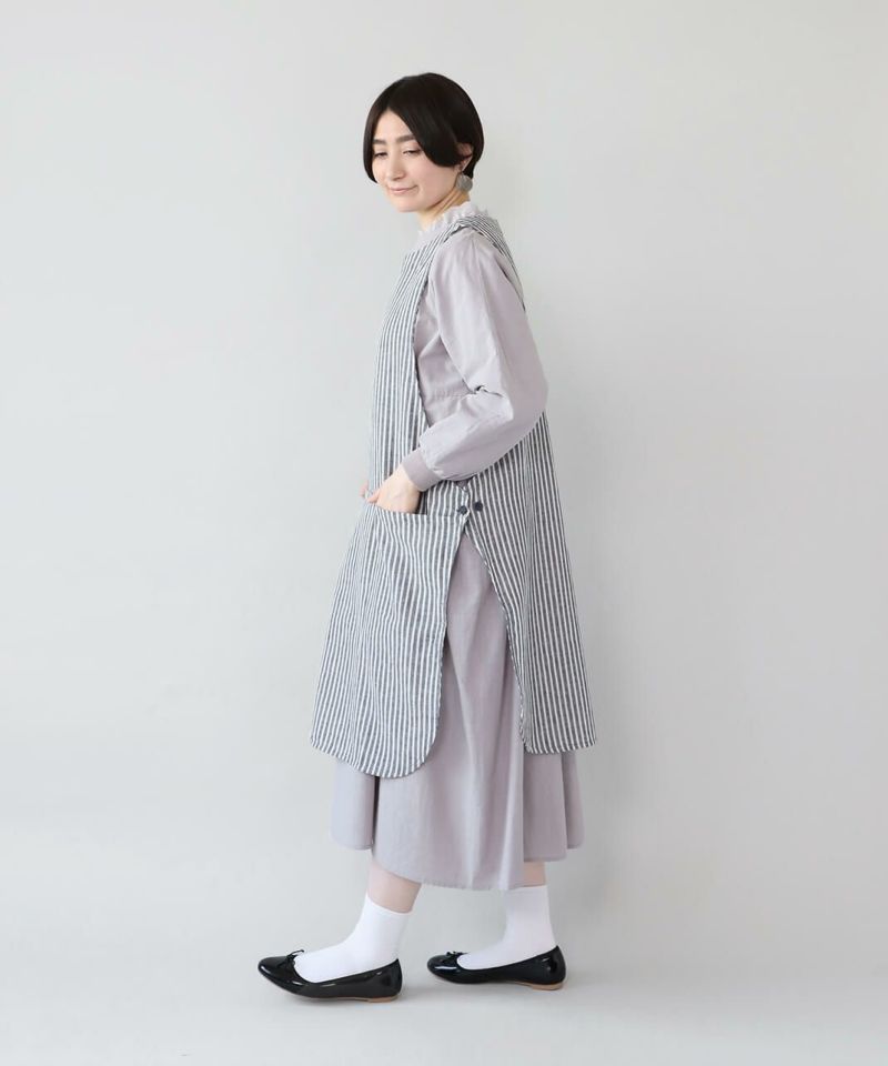 紐で結ぶ手間がなく、忙しい時でもサッと着られます。