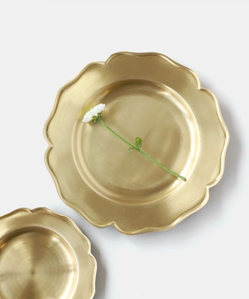 ブラストレイシリーズに美しい曲線が特徴的なデザインが仲間入り。 艶のない、少しくすんだブラスの自然な色合いで、様々なインテリアにすっと馴染み、いつもの空間がぐっとおしゃれな印象に変わります。 トレーとして、机の上や玄関の細々したものをまとめたり、キャンドルや香水、お気に入りのピアスや指輪置き場にしても。 休憩時間におやつをのせて使うのもいいですね。 サイズはSとMの2サイズ。 長く使用していると、経年変化のため色が変化する場合がございますが、商品の風合いとして、お楽しみください。