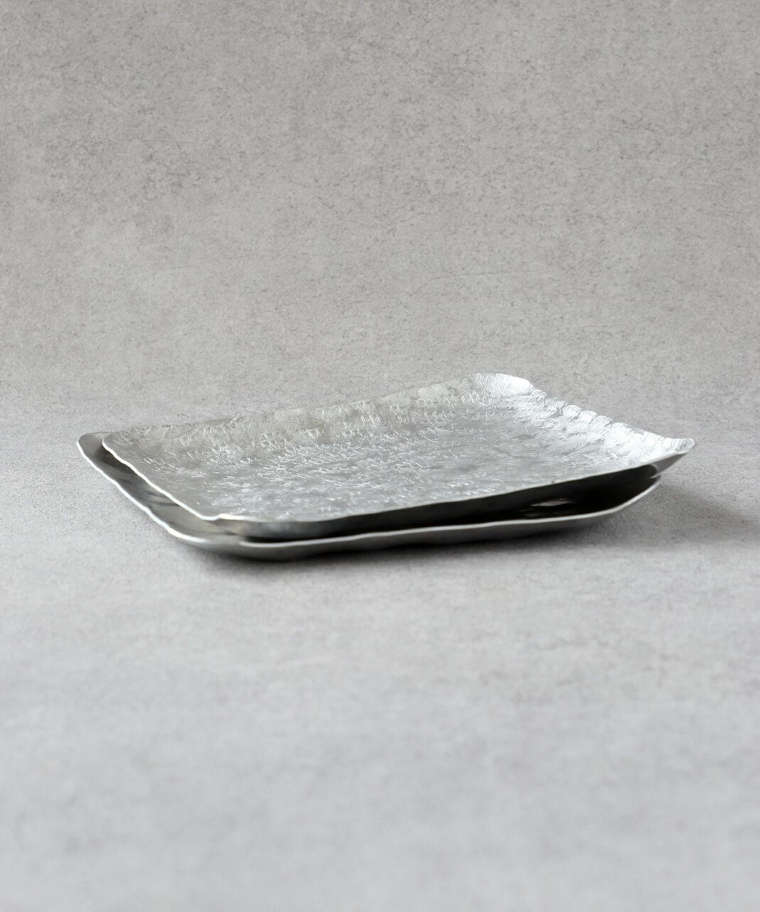 リズム良く打っていくことで平らだった金属の板が曲がり、カトラリーやプレートの形に。