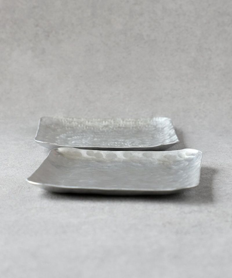 京都で制作されている山田憲栄さん。 アルミや真鍮などの金属の牡蠣板をひとつひとつ手作業で切り出し、素材の金属の板を金槌で叩いて形が作り出されます。 リズム良く打っていくことで平らだった金属の板が曲がり、カトラリーやプレートの形に。 その叩く音を表現した擬音 rap rap(ラップラップ)がそのままブランド名の〈Rap!Rap!〉の由来になっています。