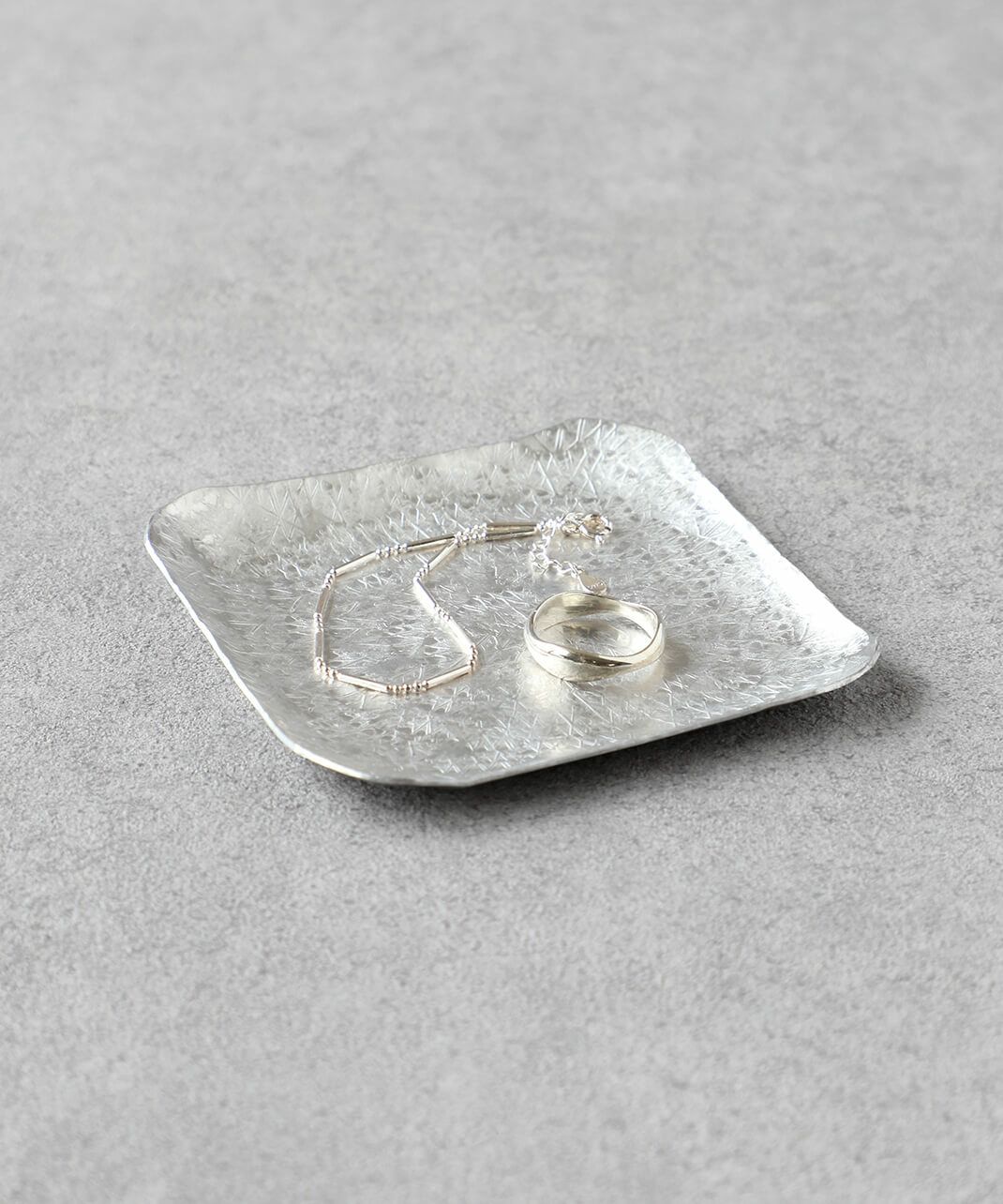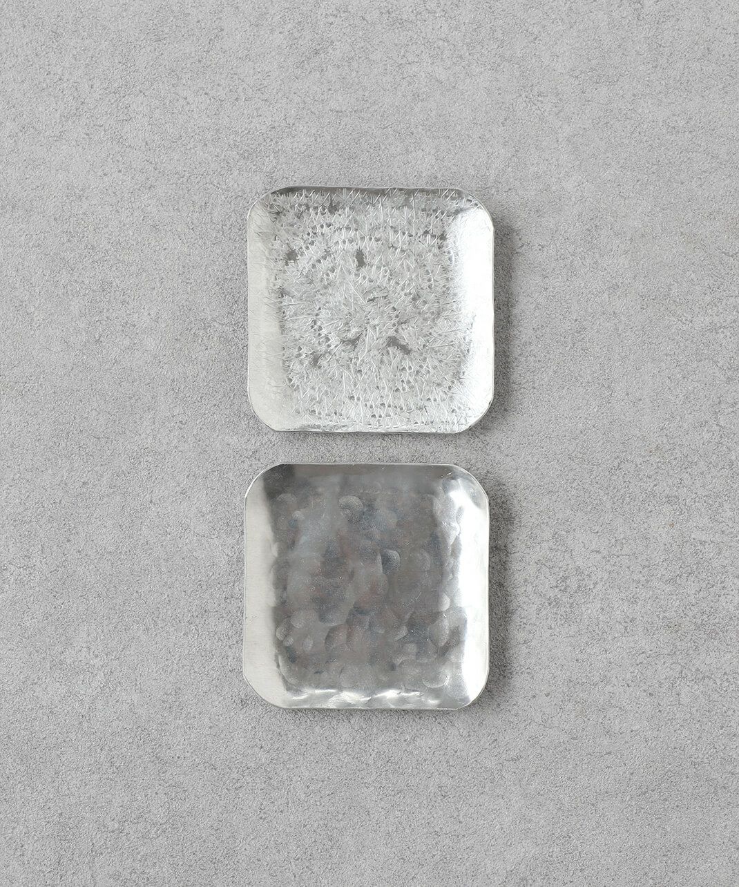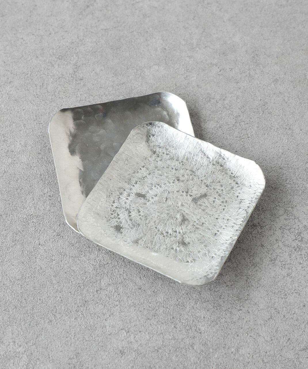 京都で制作されている山田憲栄さん。 アルミや真鍮などの金属の牡蠣板をひとつひとつ手作業で切り出し、素材の金属の板を金槌で叩いて形が作り出されます。 リズム良く打っていくことで平らだった金属の板が曲がり、カトラリーやプレートの形に。 その叩く音を表現した擬音 rap rap(ラップラップ)がそのままブランド名の〈Rap!Rap!〉の由来になっています。