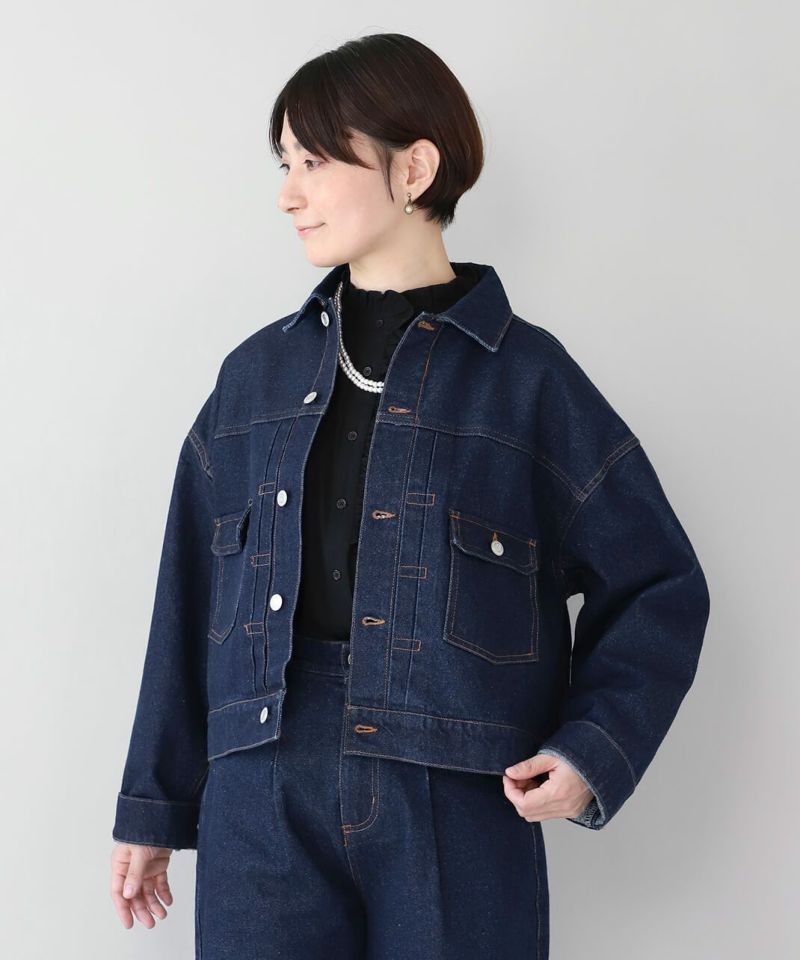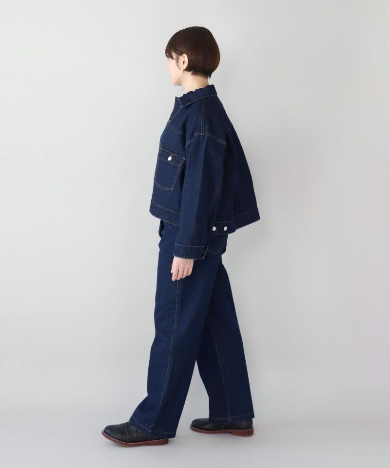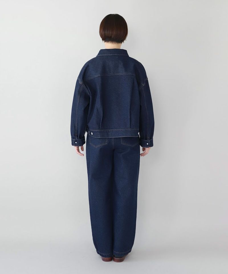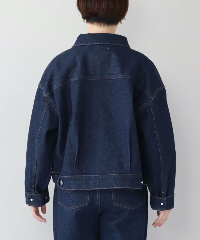 デニム素材を使用したショートジャケットです。少しワイドシルエットで着丈が短めなので、すっきりとスタイルアップ出来る1着。袖と裾のサイドにはサイズ調整のボタンがついているためシルエットを変える楽しみも。