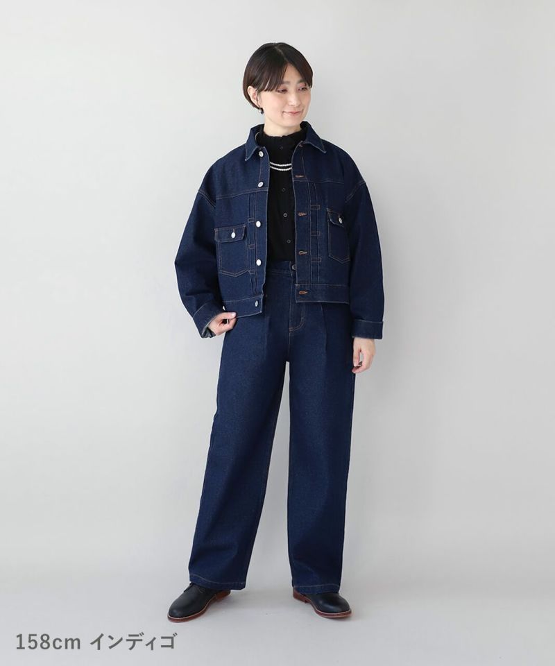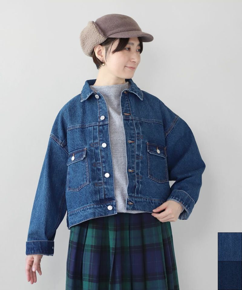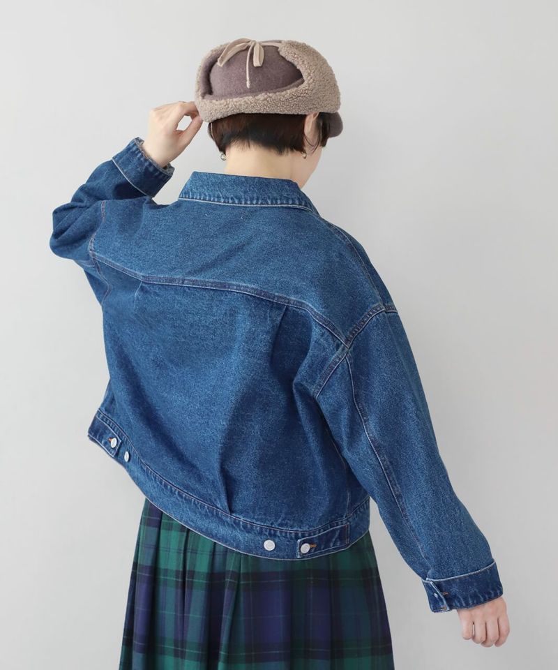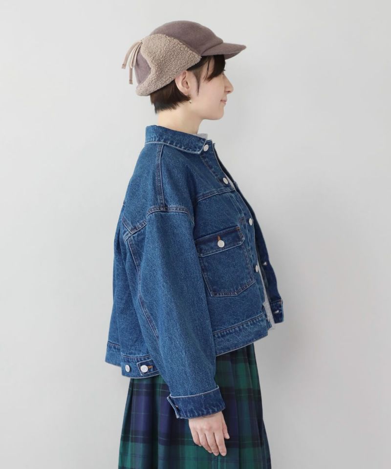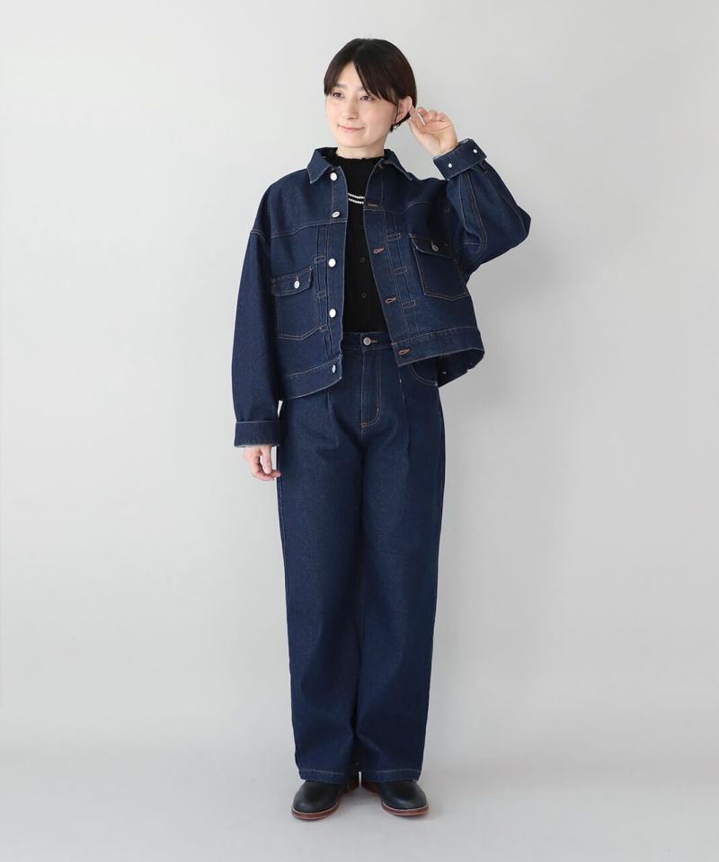 デニム素材を使用したショートジャケットです。少しワイドシルエットで着丈が短めなので、すっきりとスタイルアップ出来る1着。袖と裾のサイドにはサイズ調整のボタンがついているためシルエットを変える楽しみも。