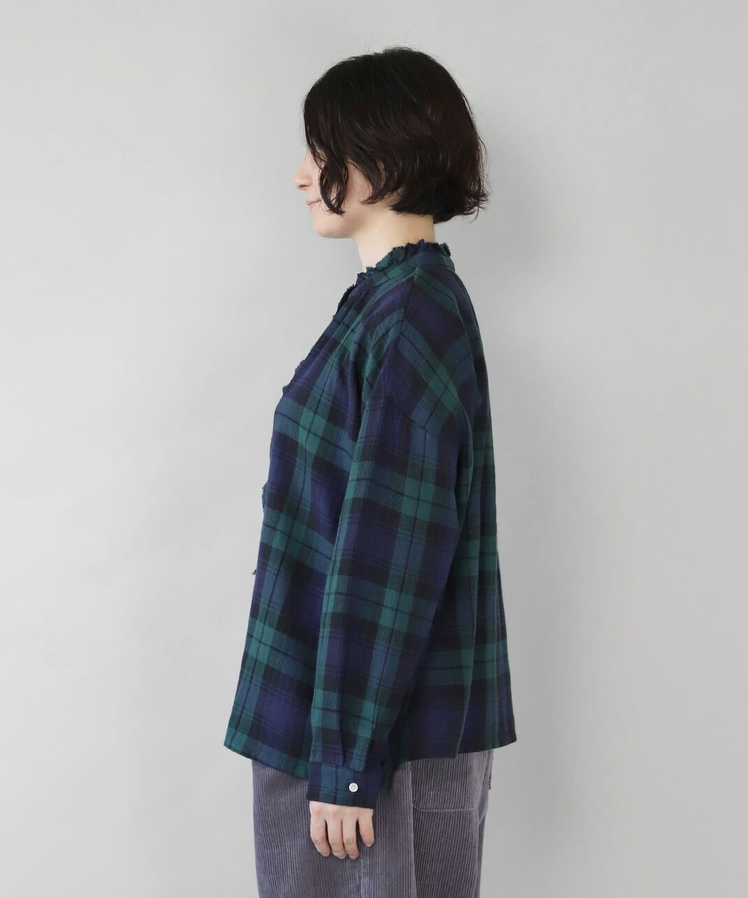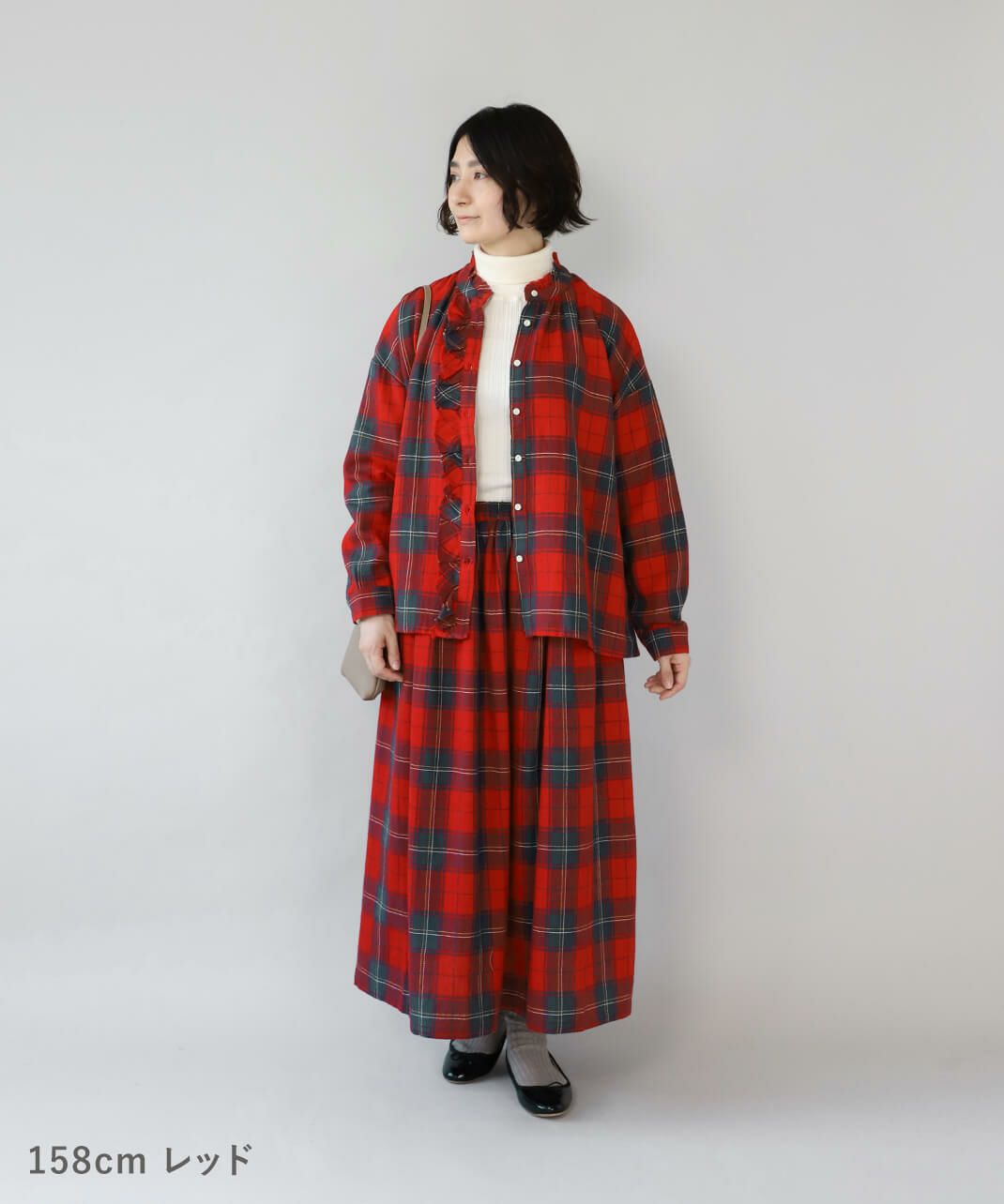 軽くて柔らかい起毛したコットンリネン素材を使用したチェックフリルブラウスです。