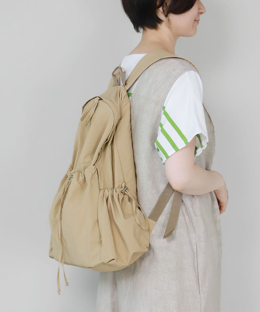 リュックは収納力がありながら軽く、使い勝手も抜群。内ポケットや開け口の工夫など、日々の暮らしに嬉しい細かな気配りも詰まっています。どこか温かみを感じるデザインは、ファッションのアクセントにもぴったり。