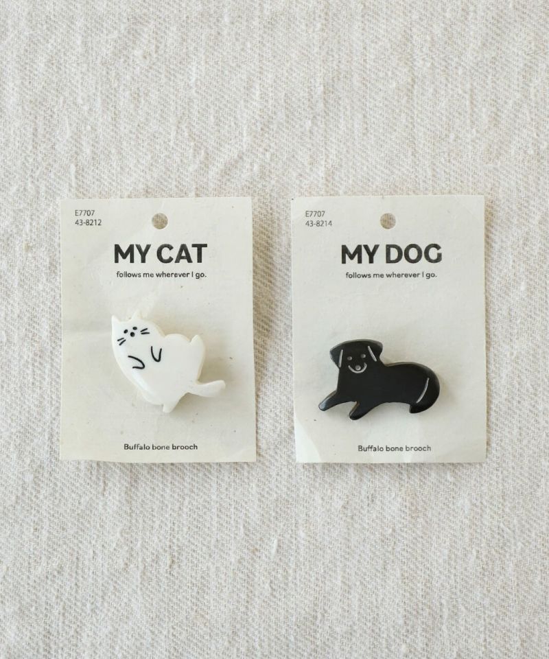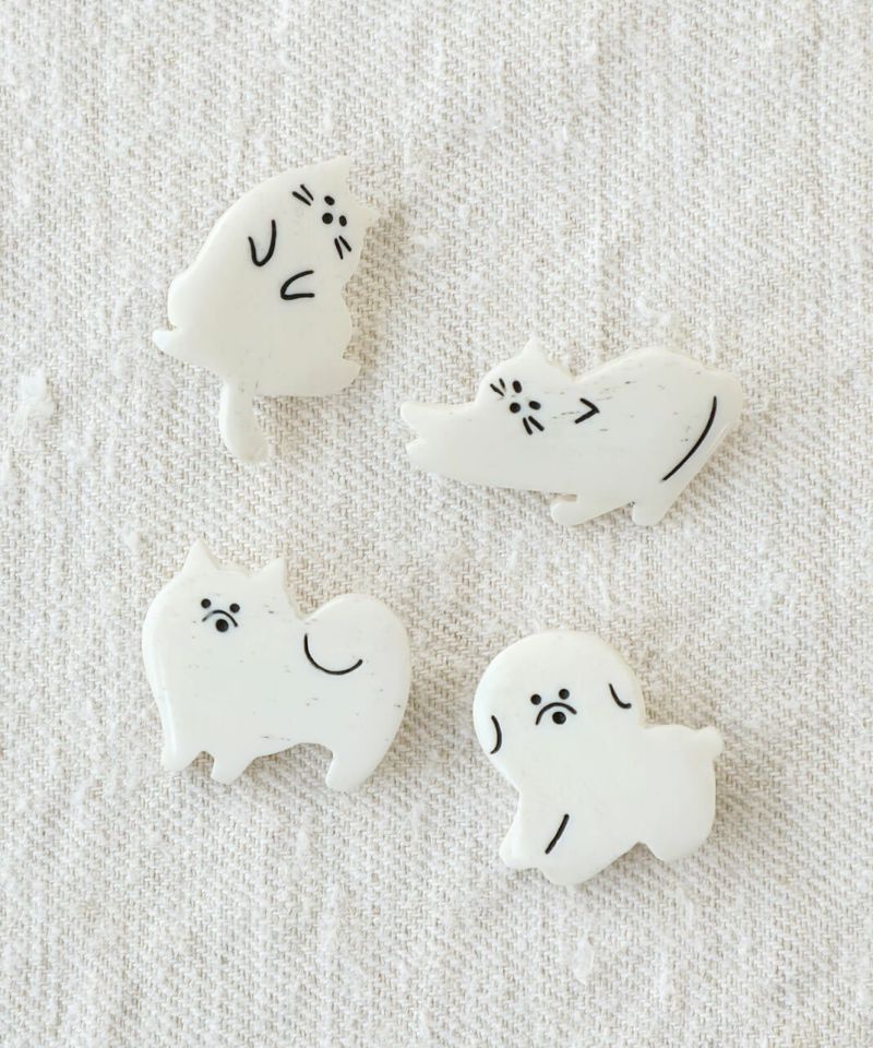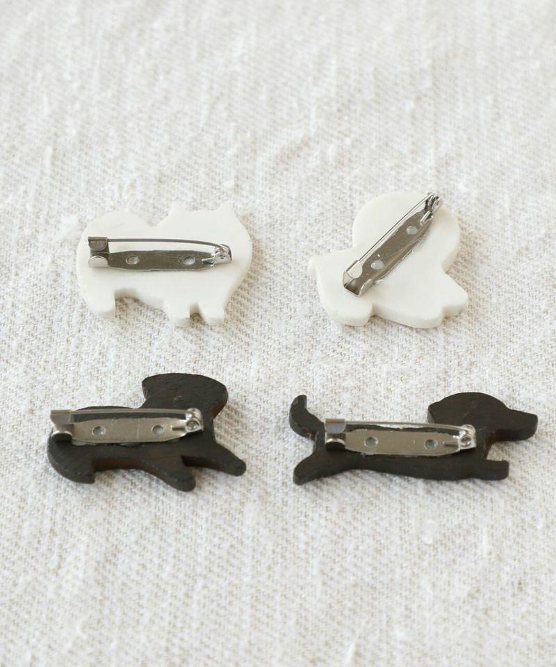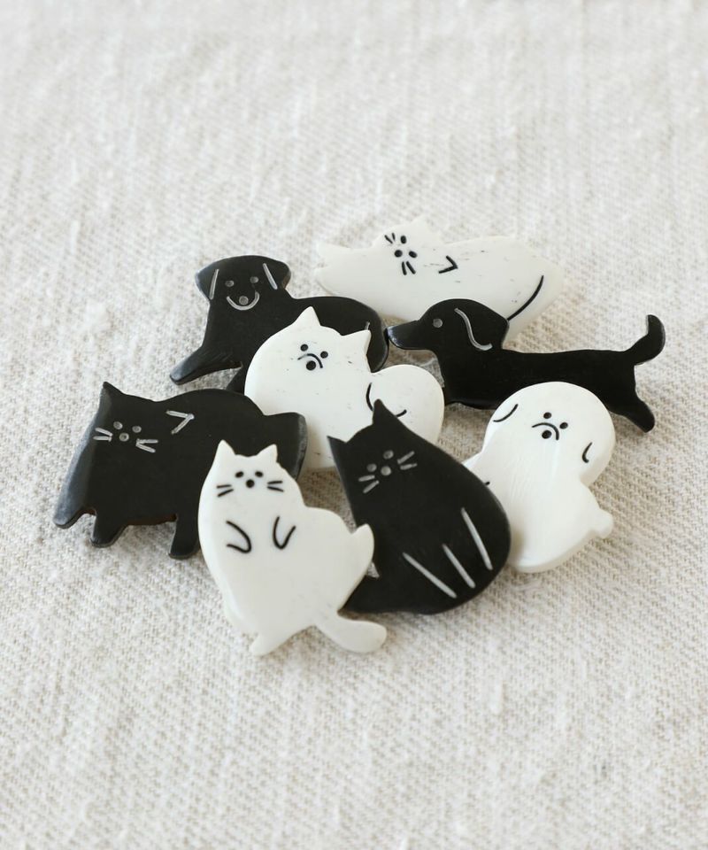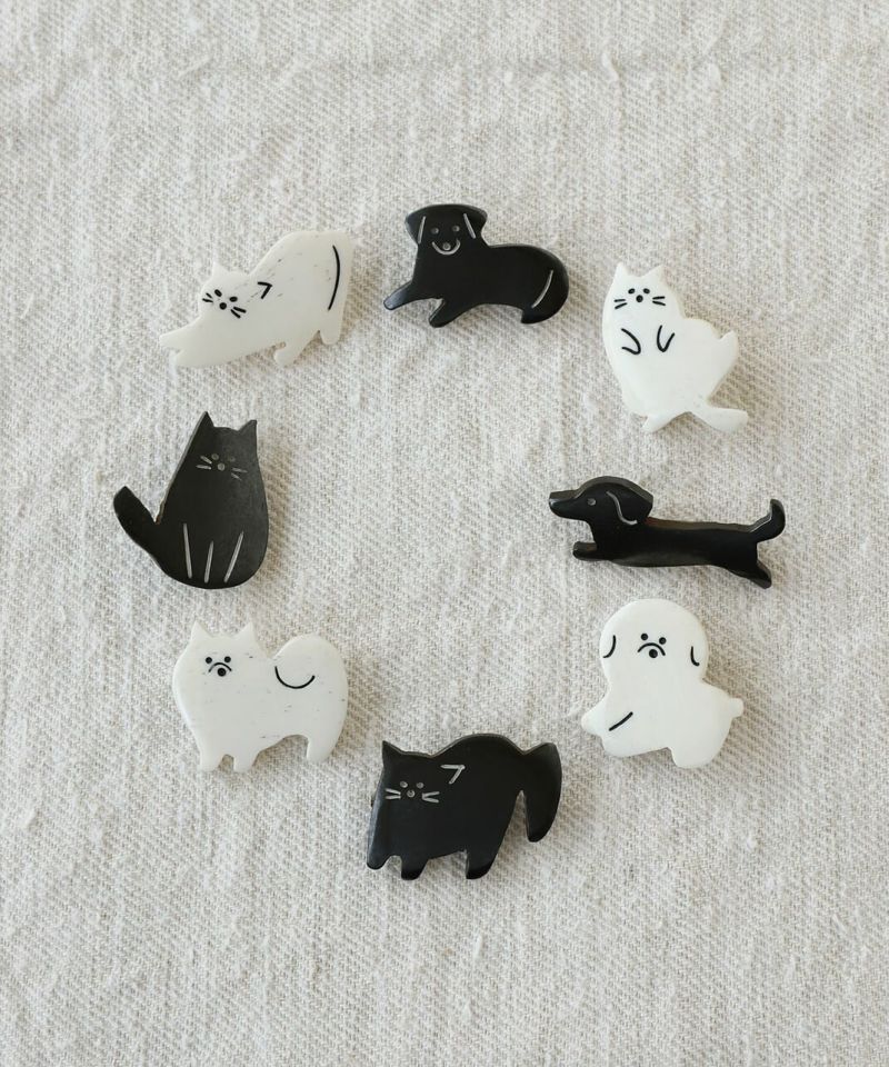 水牛の角を素材としたネパール製のハンドクラフトのブローチ。チャーミングな犬と猫の動きや仕草がゆるく表現されています。帽子やトートバックにつけたり、お部屋に飾ったり好きなように楽しんでください。