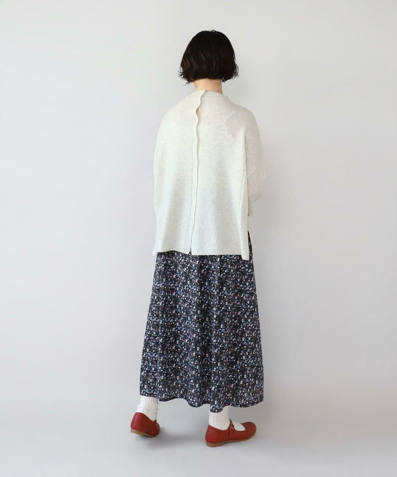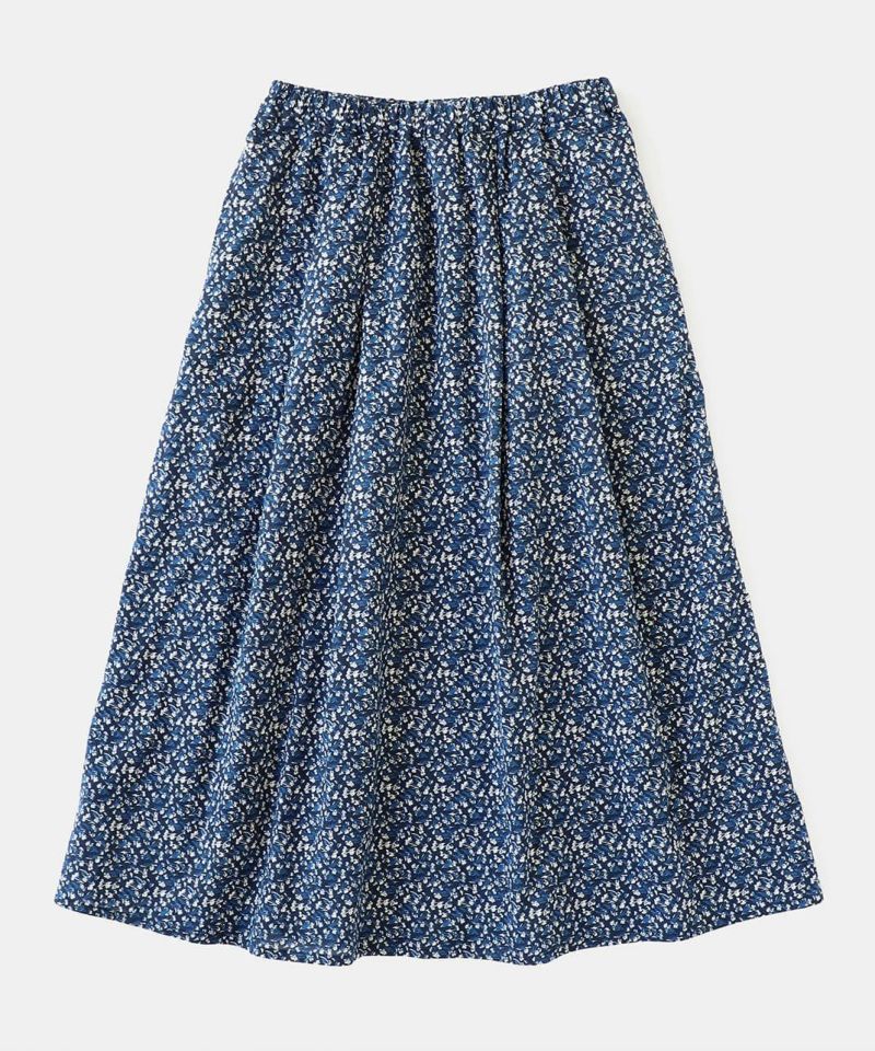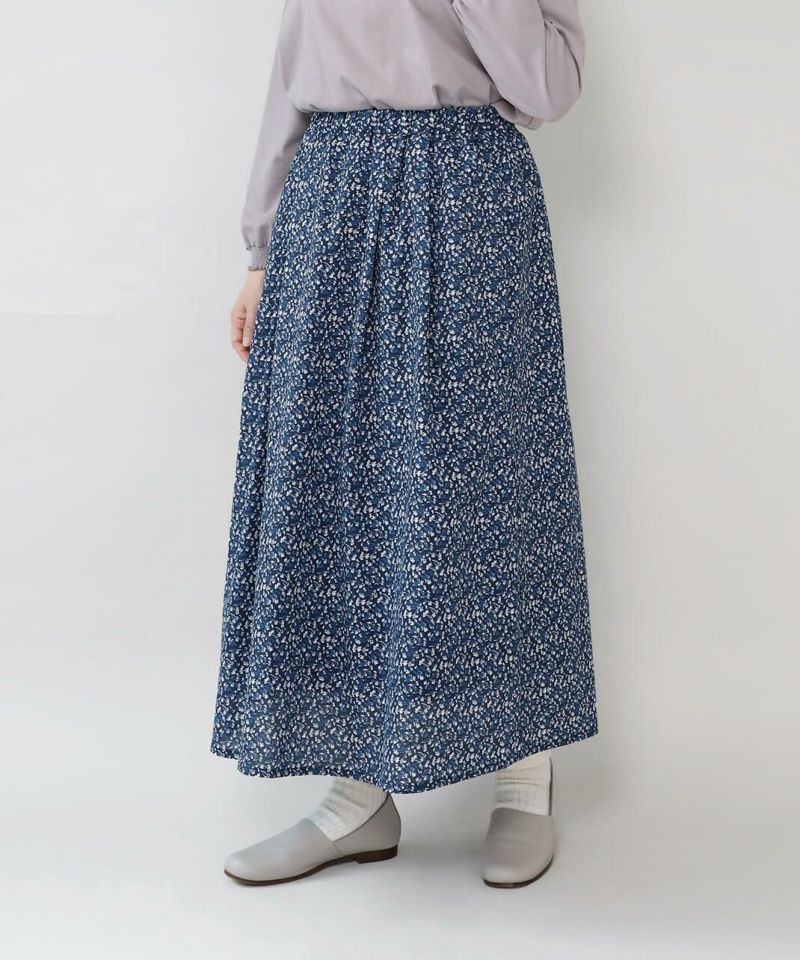さらりとした薄手のコットンローン生地を使用した花柄のスカートです。 裾に向けてほどよく広がるフレアシルエット。細やかなフワラープリントが上品でフェミニンな印象を演出してくれます。ウエストはすべてゴム仕様で内紐つきのためジャストサイズで着用可能。ポリエルテルの裏地付きのため張り付きにくく透け感がおさえられています。スウェットなどを合わせてカジュアルに着こなすのもおすすめです。