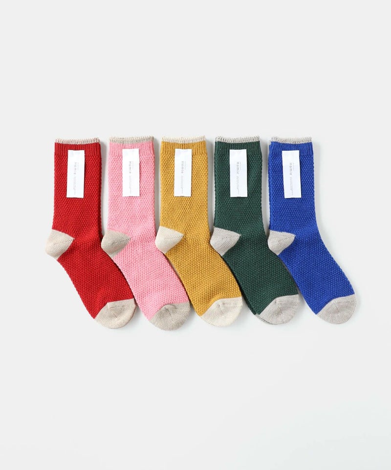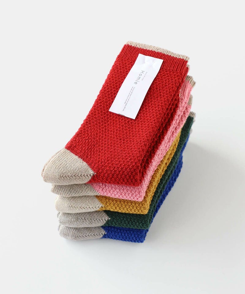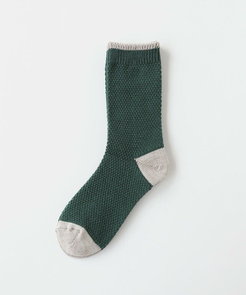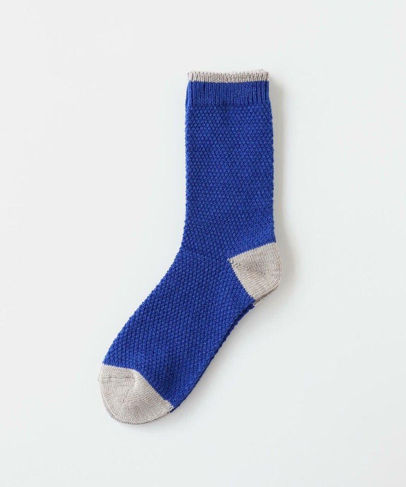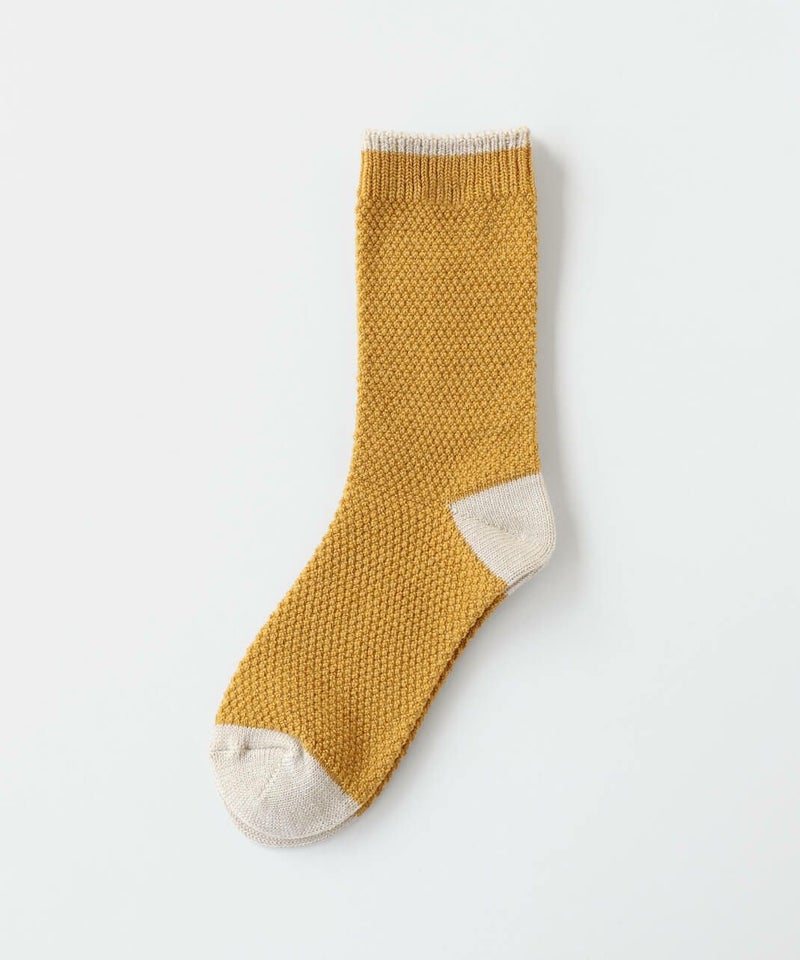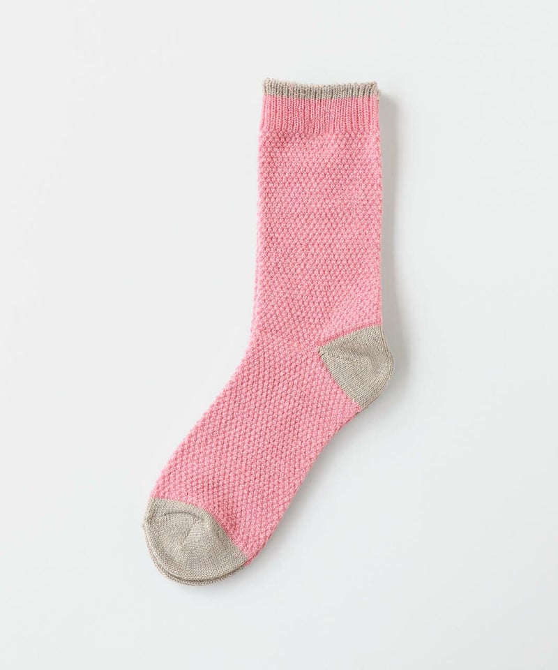 鹿の子編みにすることで凹凸のある編み地がほどよく空気を含み、蒸れにくくあたたかあたたかさを保ち、快適な履き心地てす。
