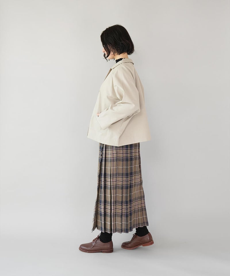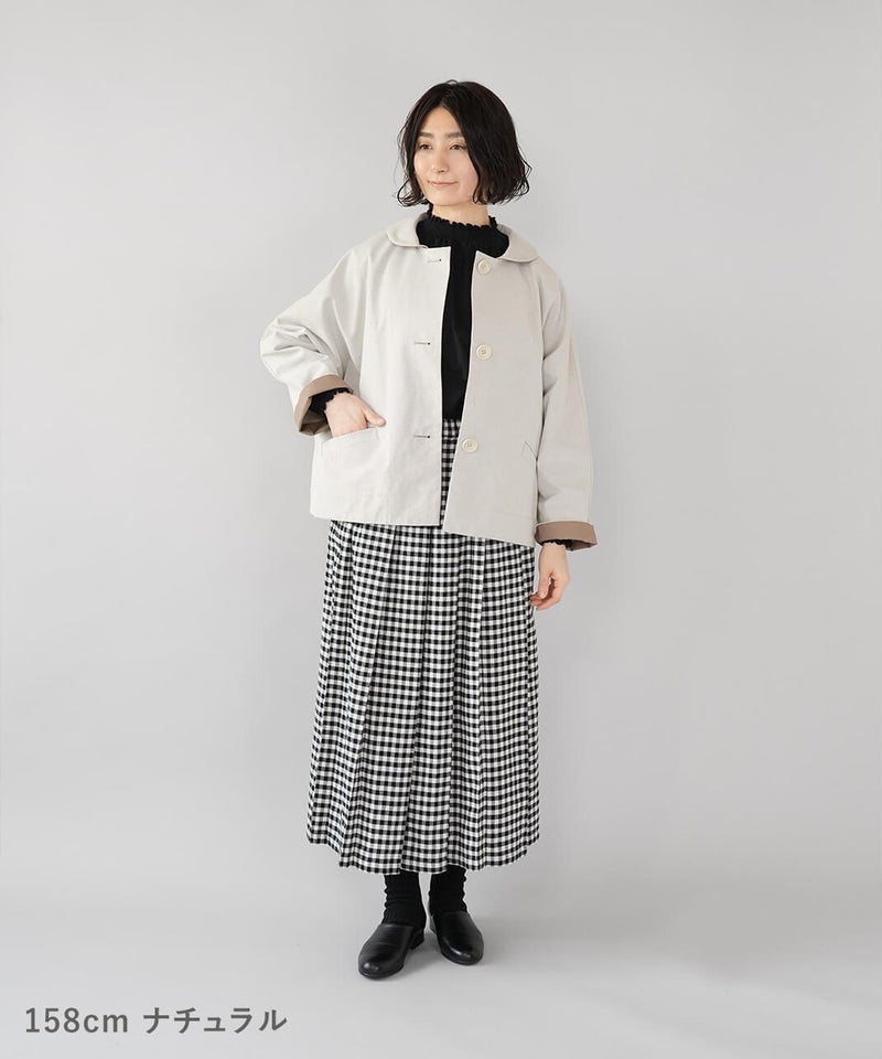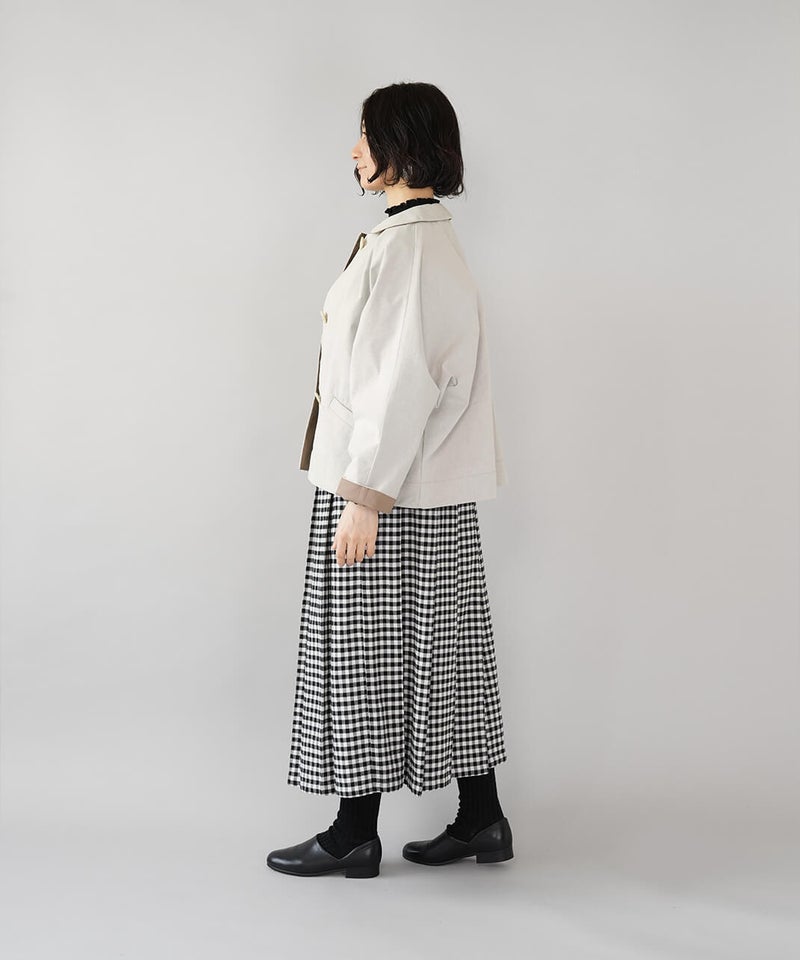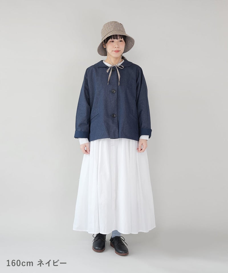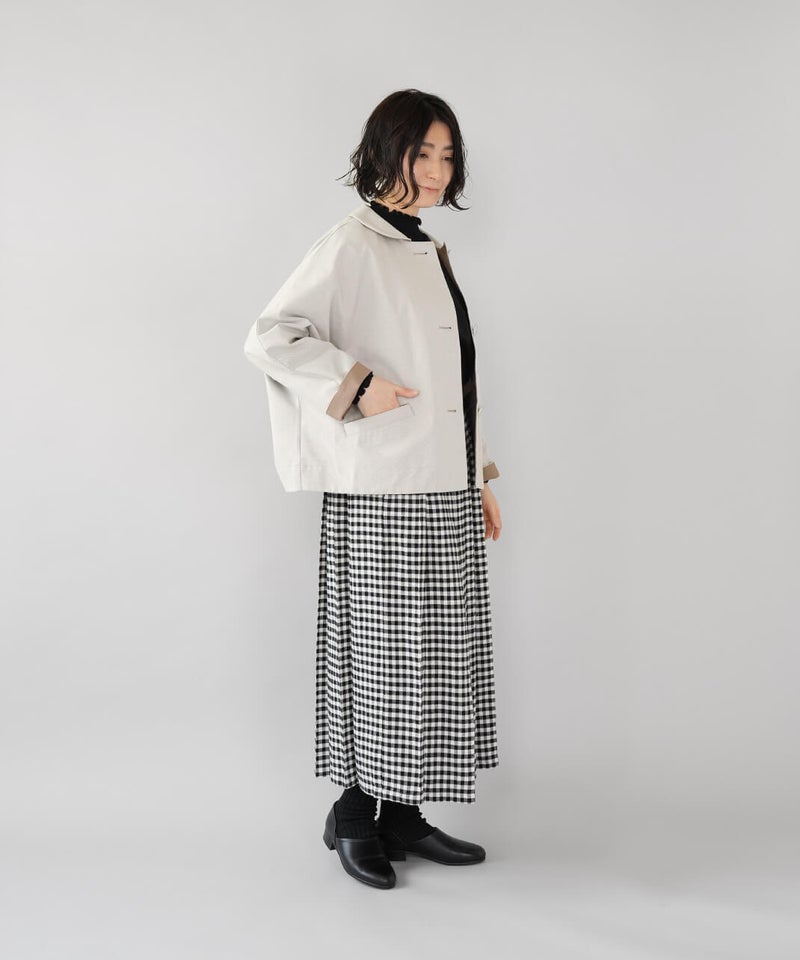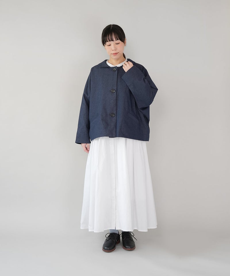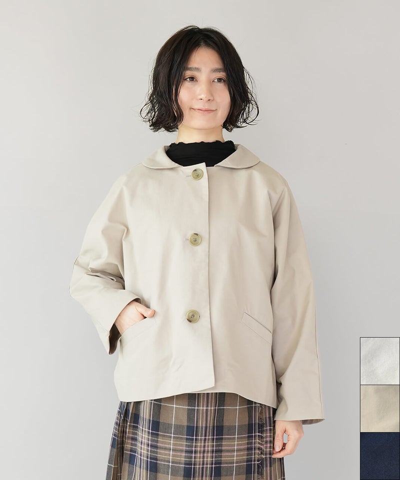 ほどよく厚みのあるコットンナイロン生地を使用したジャケットです。丸みのある襟とドルマンスリーブデザインが、やわらかでかわいい印象を演出してくれます。ボックスシルエットはゆったりとした着心地でどんなインナーとも相性の良い1着です。さっと羽織ることができ、春先には特に重宝します。
