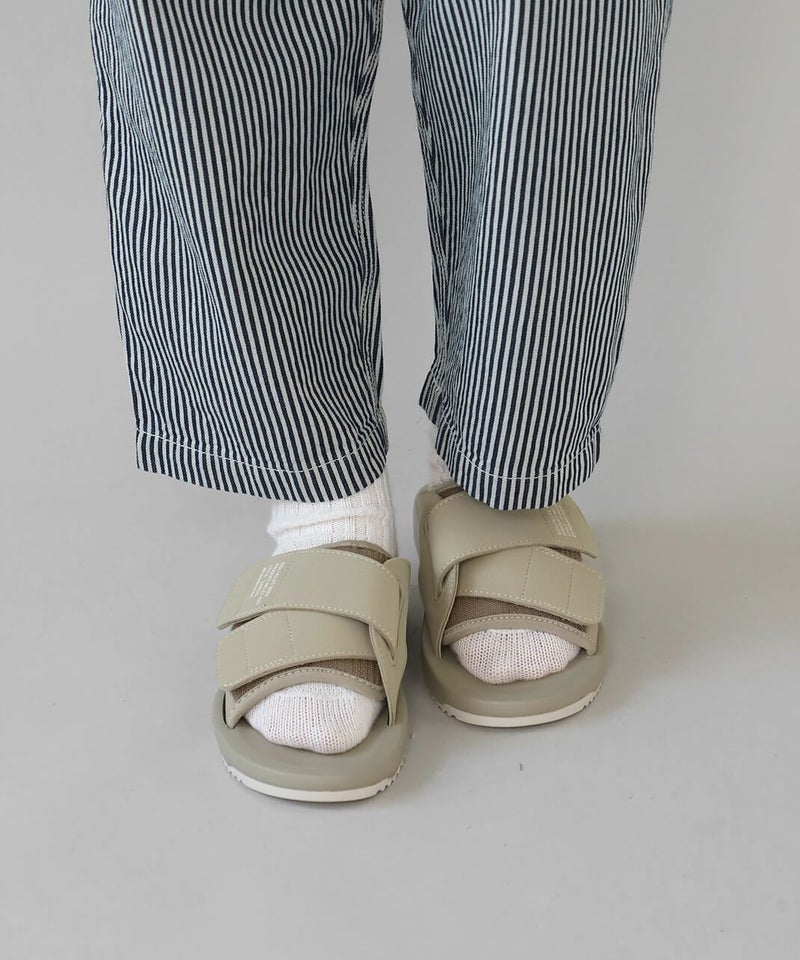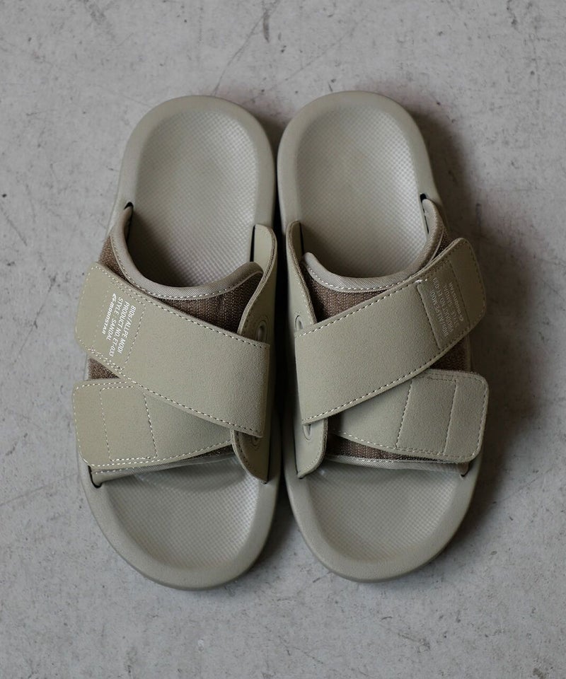 ユニバーサルデザインの心地良さをデイリーユースに。スポサンよりも気軽でスライドよりもフィッティングに優れた仕様。 フッドヘッドの素材を反発力の高い配合に改良しコンフォート性を向上。 履く人に合わせた位置でベルトを固定できる簡潔な構造のサンダルタイプ。