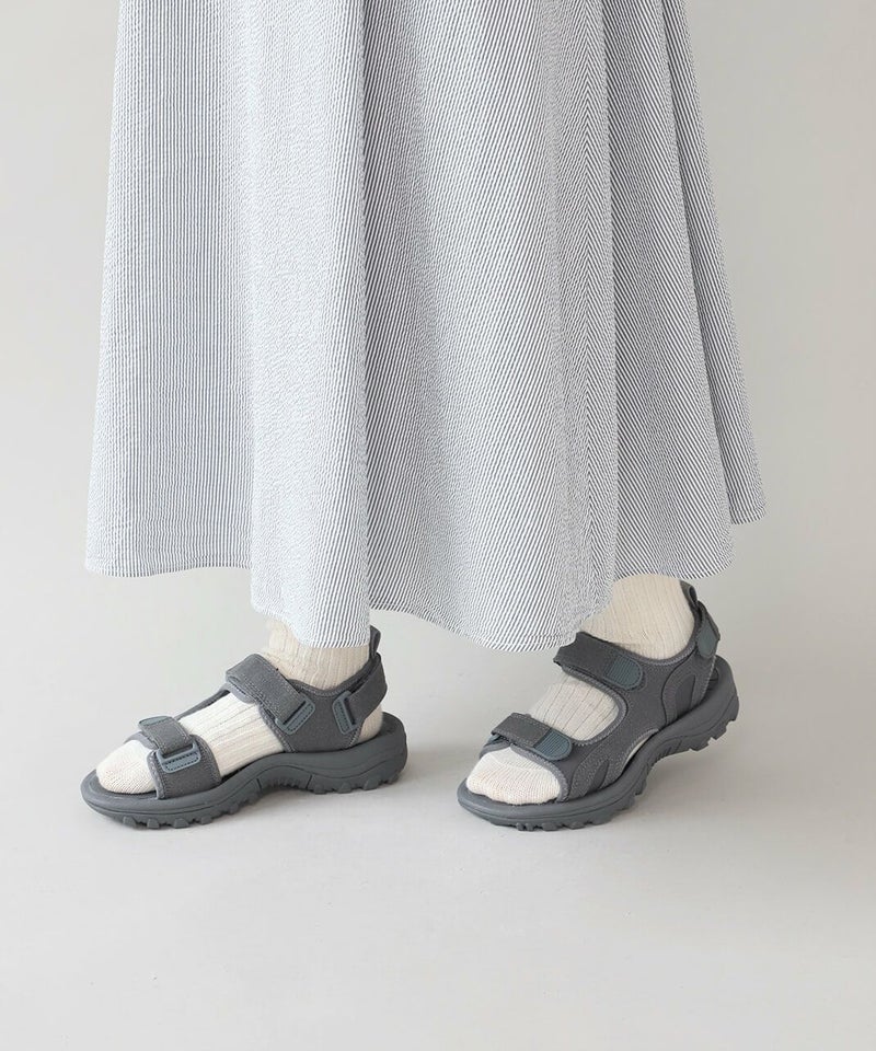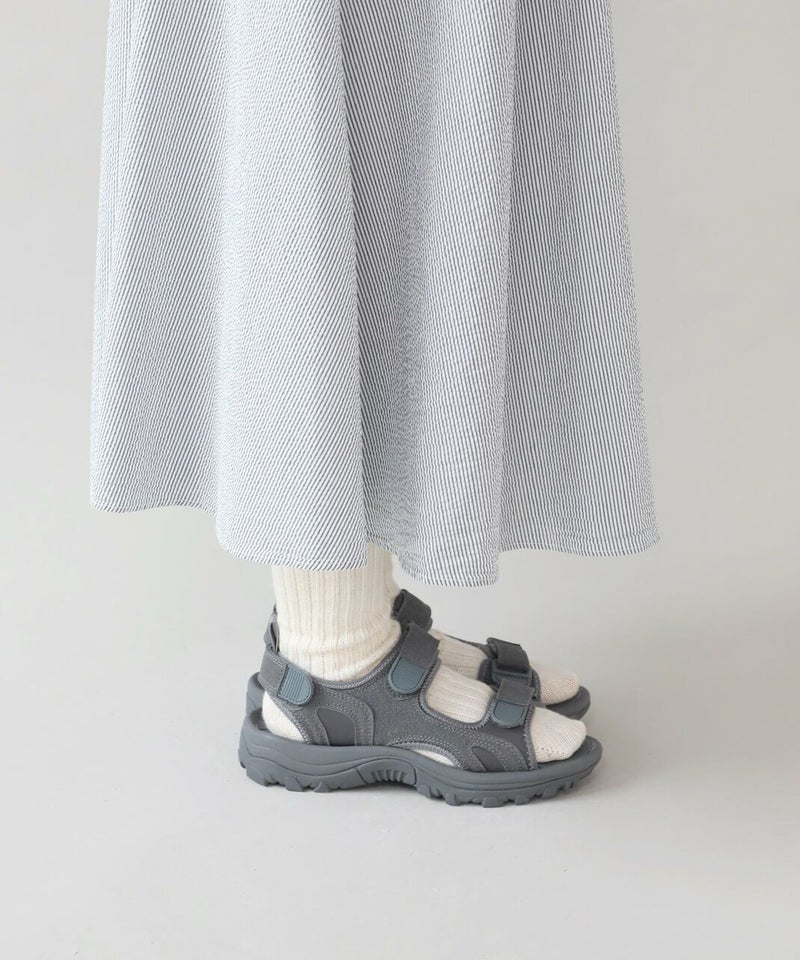 足の甲・足首・かかとの3点をしっかりとホールドするストラップ仕様です。
