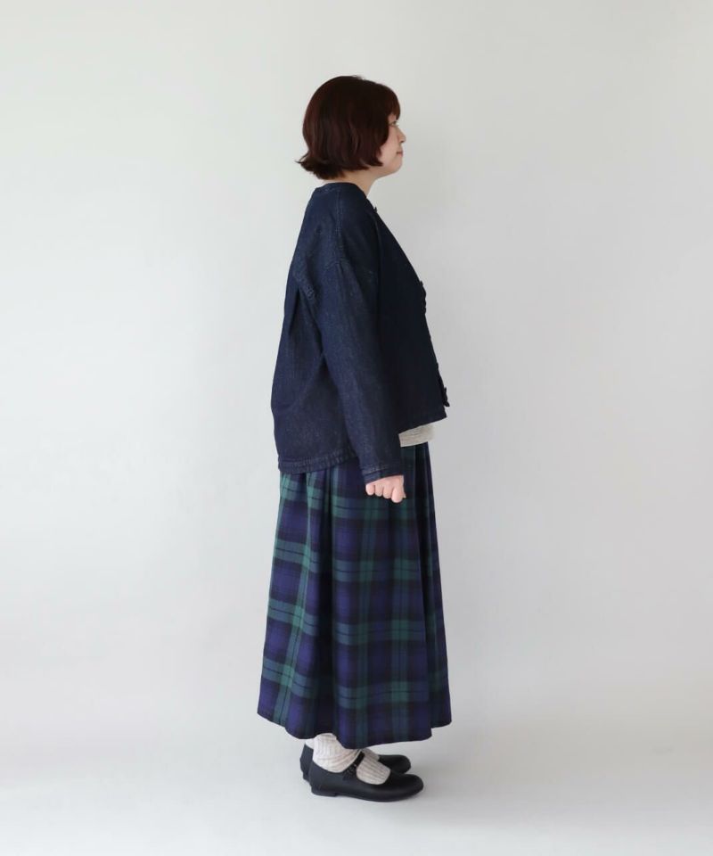 肌触りが良く、吸収性に優れたコットンリネンデニムを使用したジャケットです。 すっきりとしたマオカラーにワイドな身頃とドロップショルダーでゆったりとした着心地。後ろヨークにタックを入れ動きやすく仕上げました。前後差のある裾が気になるラインをカバーしてくれます。幅広いスタイリングに取り入れやすく1枚あると重宝します。 ※染料の特性上、色移りする可能性があります。ご注意下さい。 ※天然素材の為、ネップがある場合がございます。織り傷ではありませんのでご了承ください。