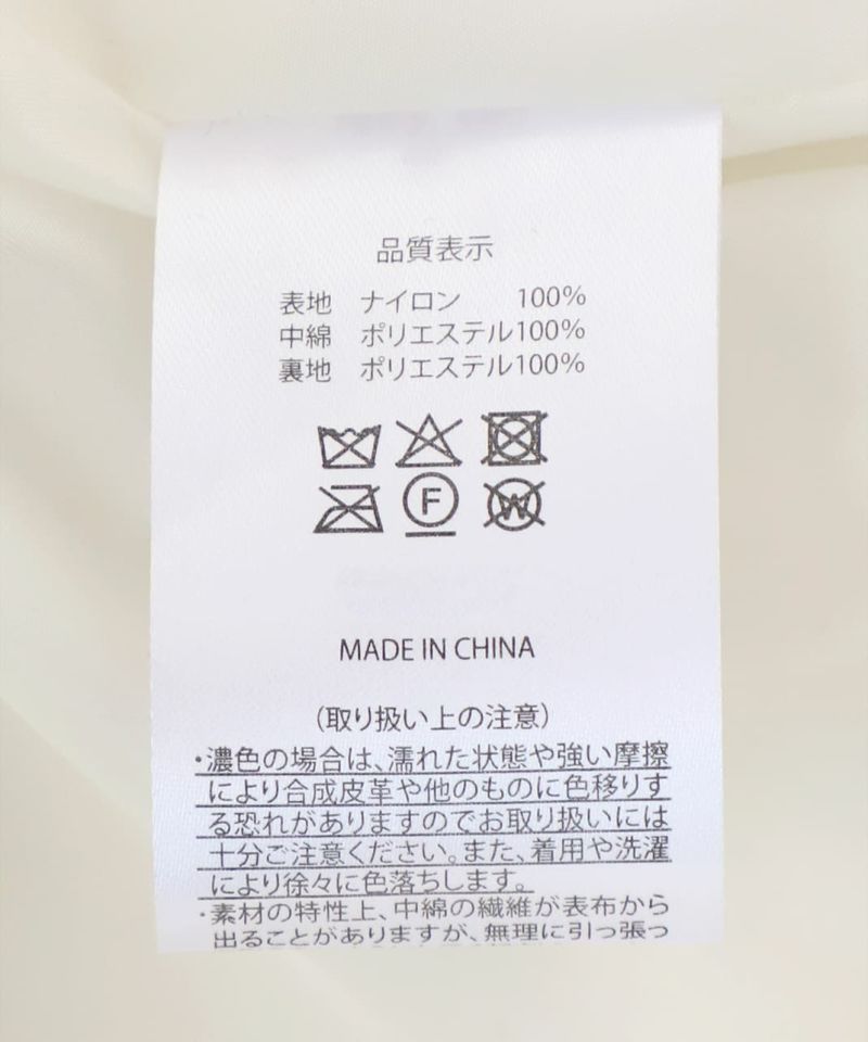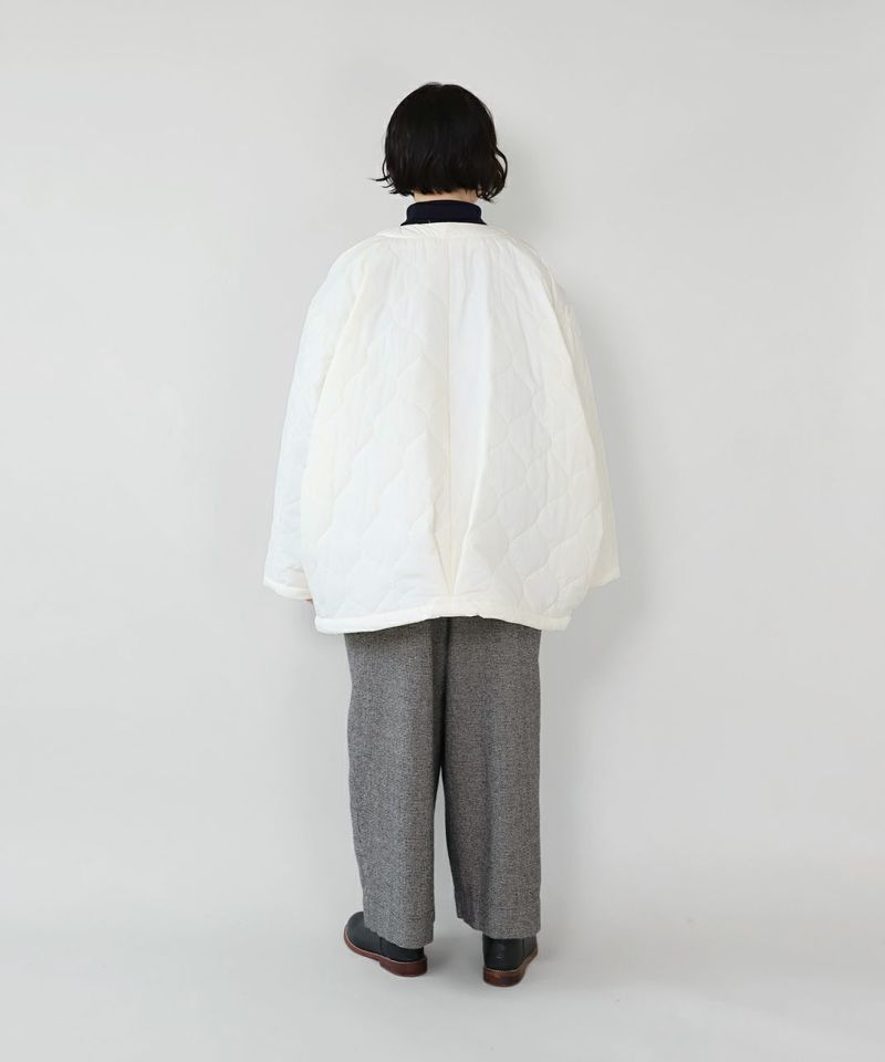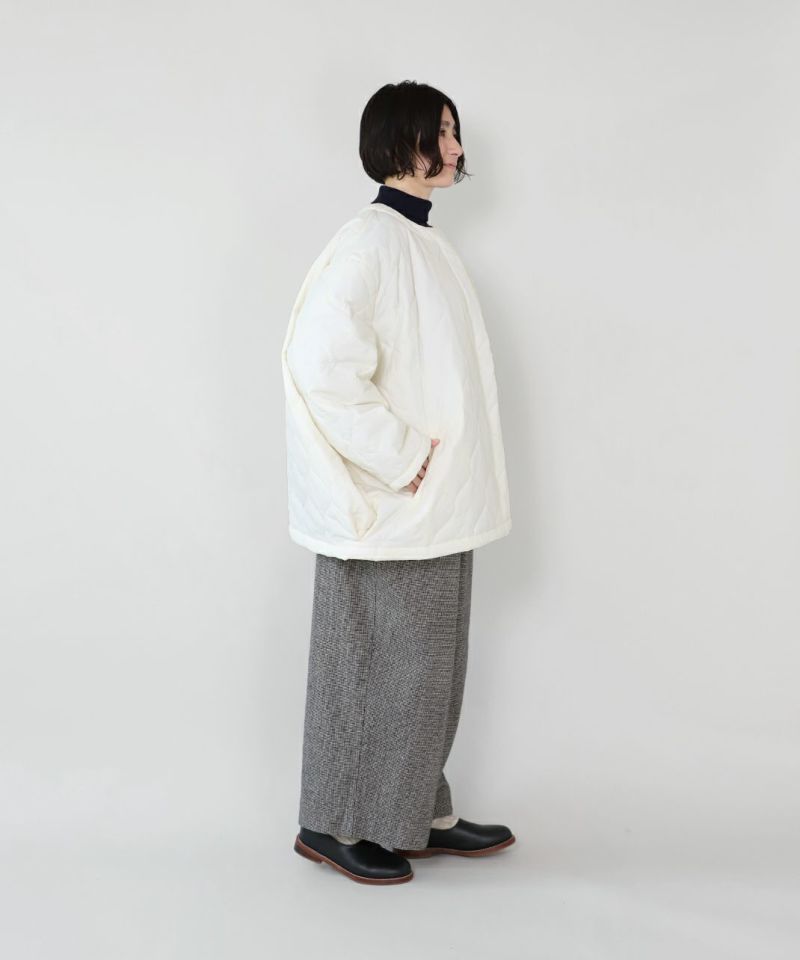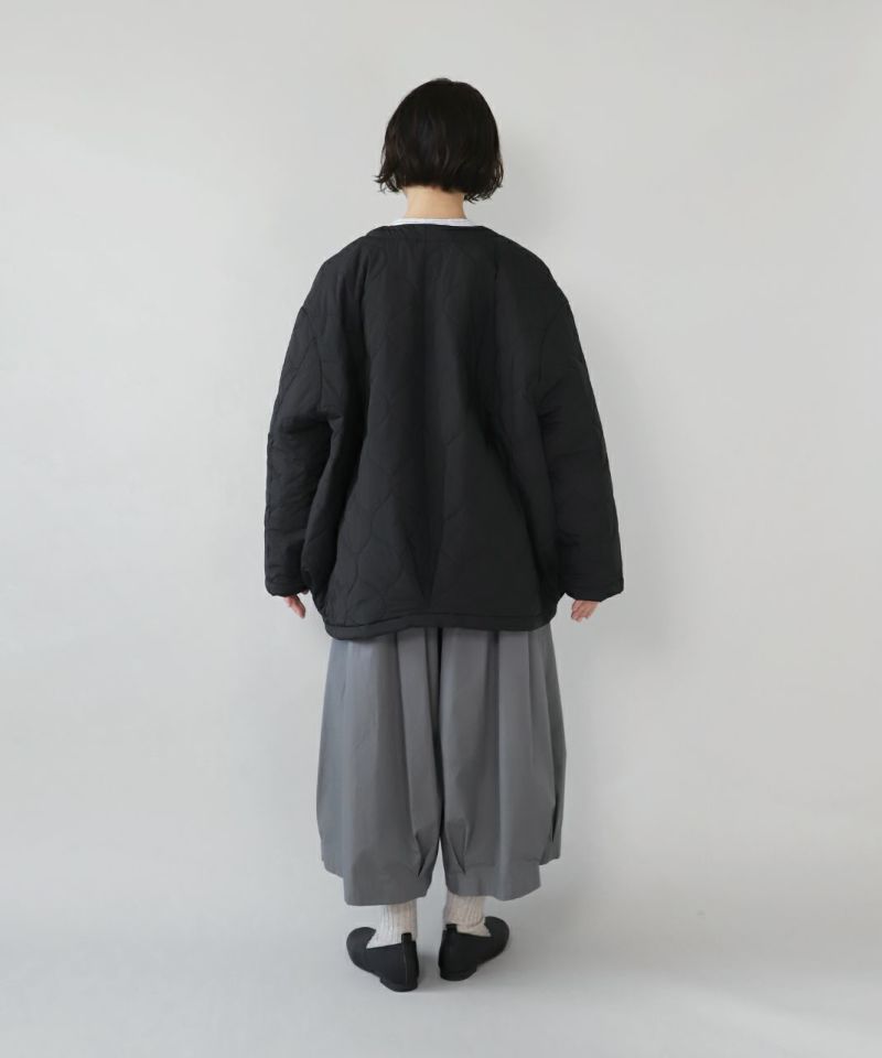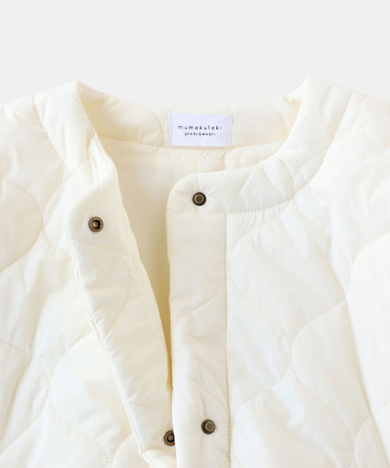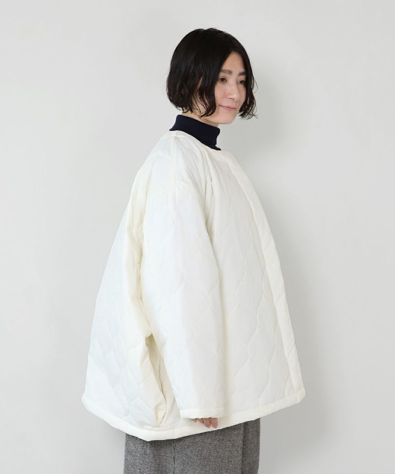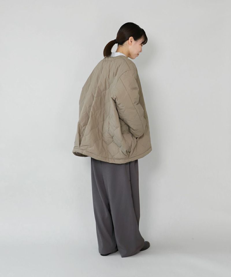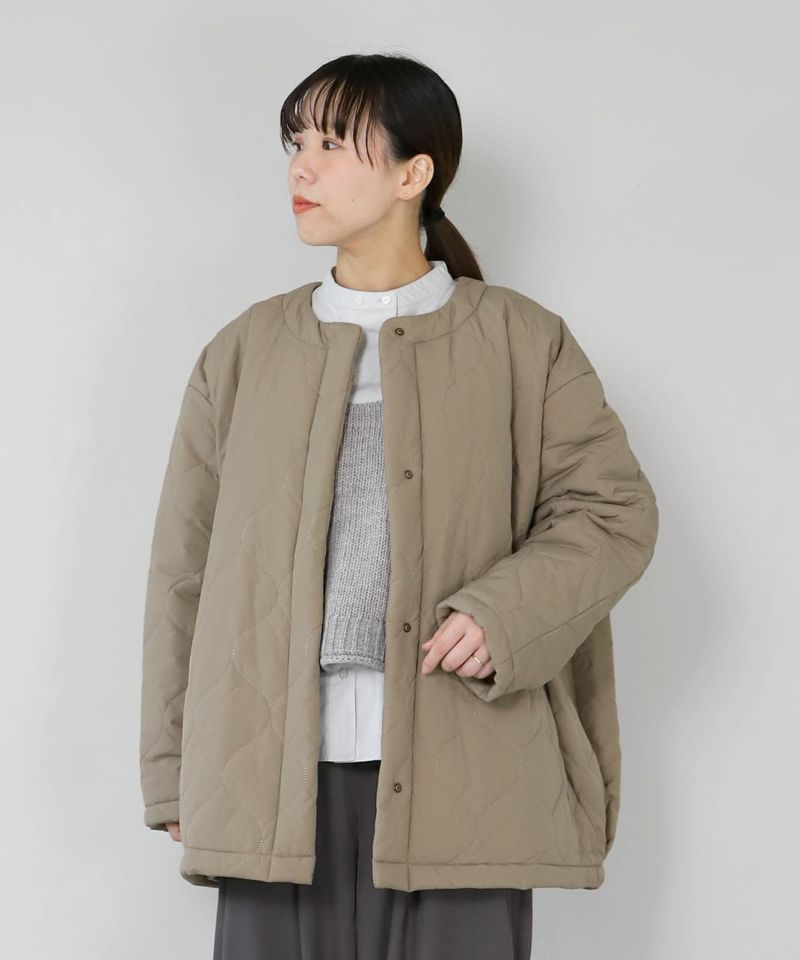 表地と裏地の間に中綿を詰めたナイロン素材のキルティング生地はあたたかく、軽やかな着心地です。