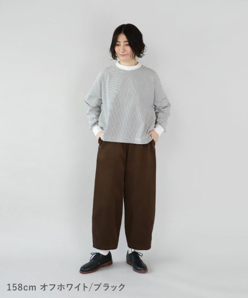 シンプルなデザインなので、パンツやスカートなどさまざまなボトムスと相性よく合わせられます。
