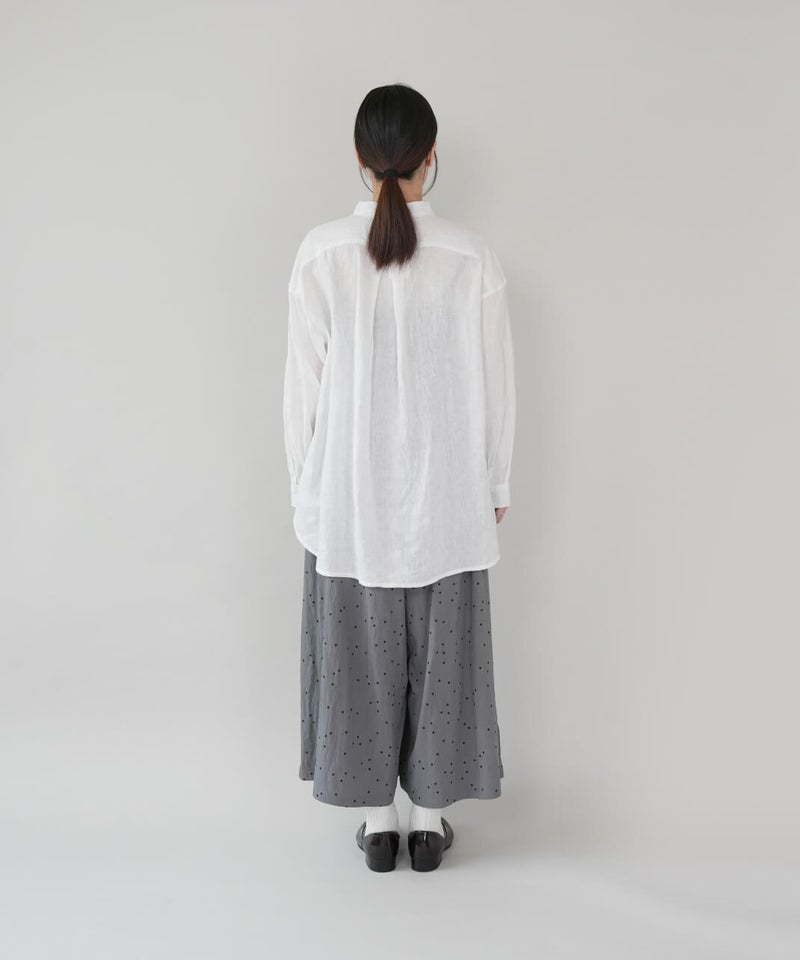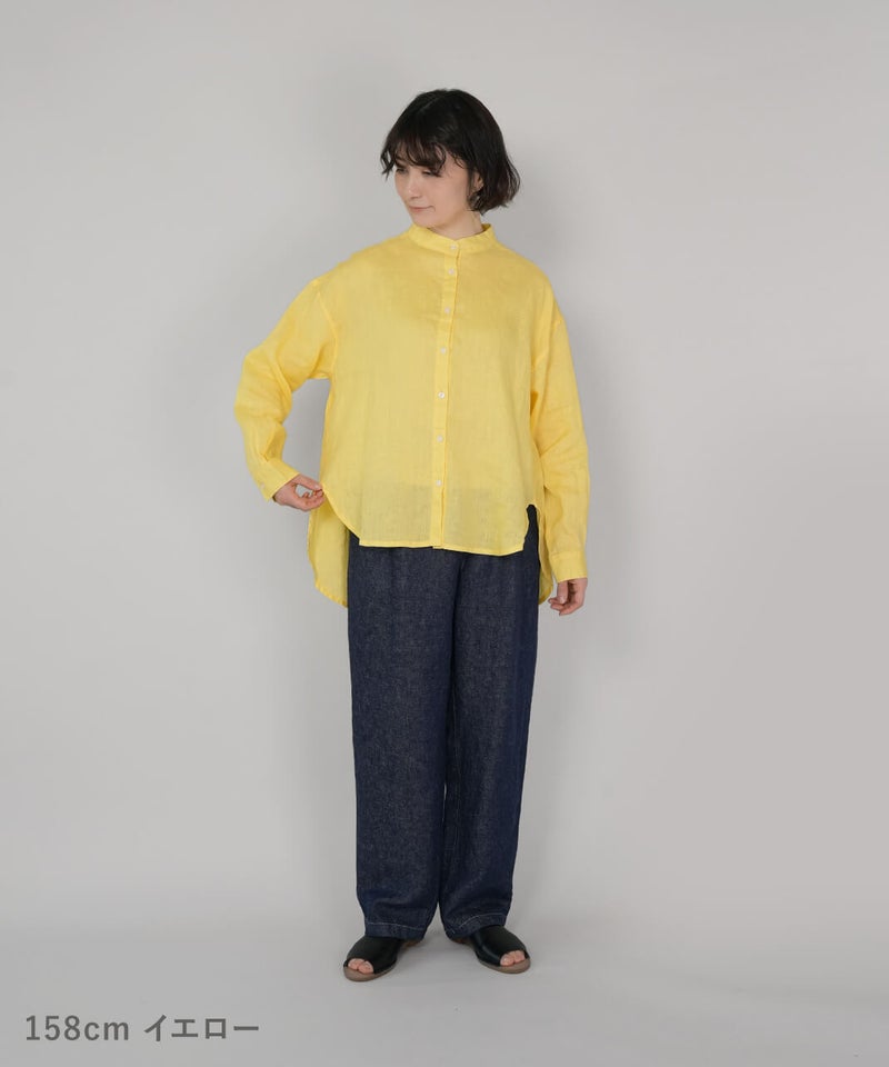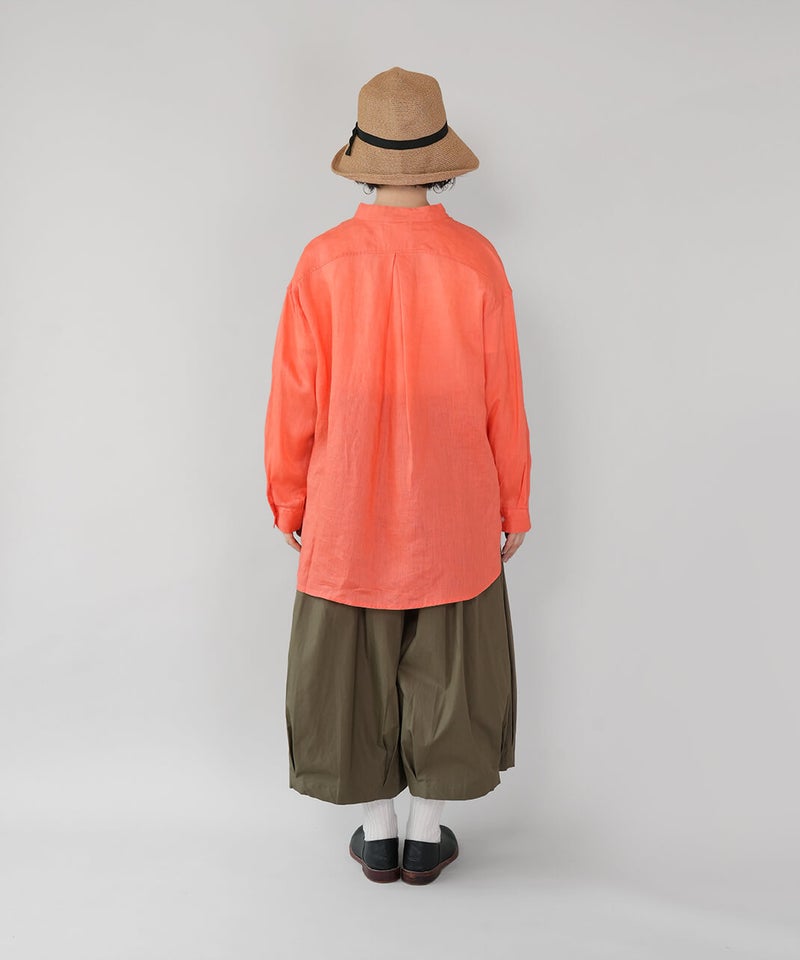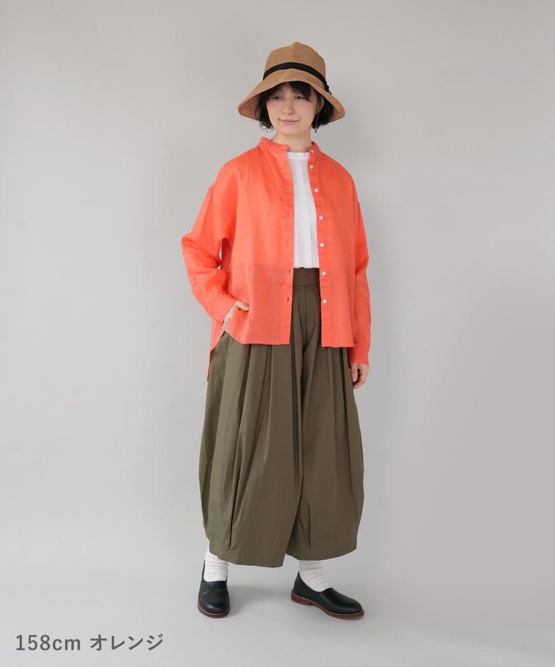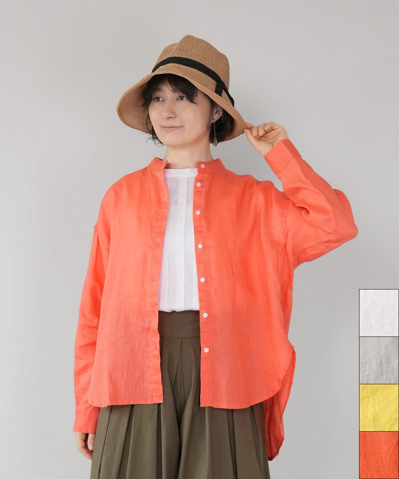 やわらかな肌ざわりと、しなやかなハリ感が魅力のリネンブラウスです。後ろをやや長めにした、バランスの取りやすいチュニックデザインに仕上げました。ノーカラーのすっきりとしたデザインに、ゆったりとしたサイズ感で抜け感をプラス。シンプルながらも大人らしい印象です。前後差のある丈感は、身体のラインをさりげなくカバーしつつ、軽やかな動きを演出してくれます。ブラウスとしてはもちろん、軽やかな羽織りとしても活躍し、季節の変わり目にも重宝する1着です。