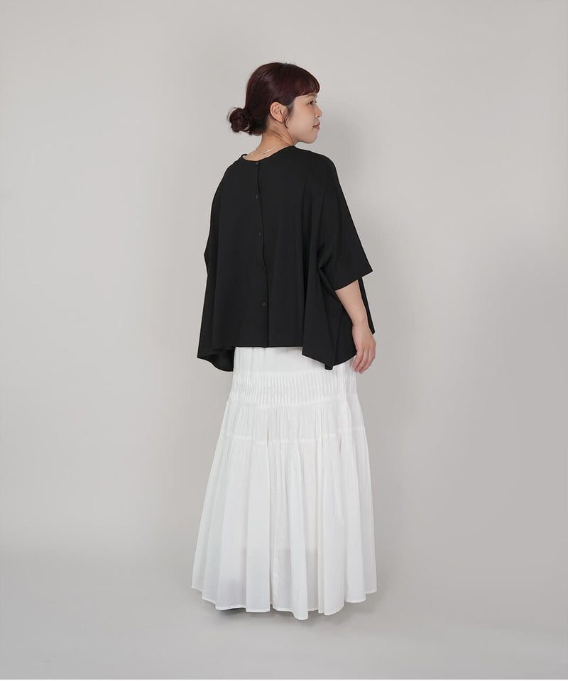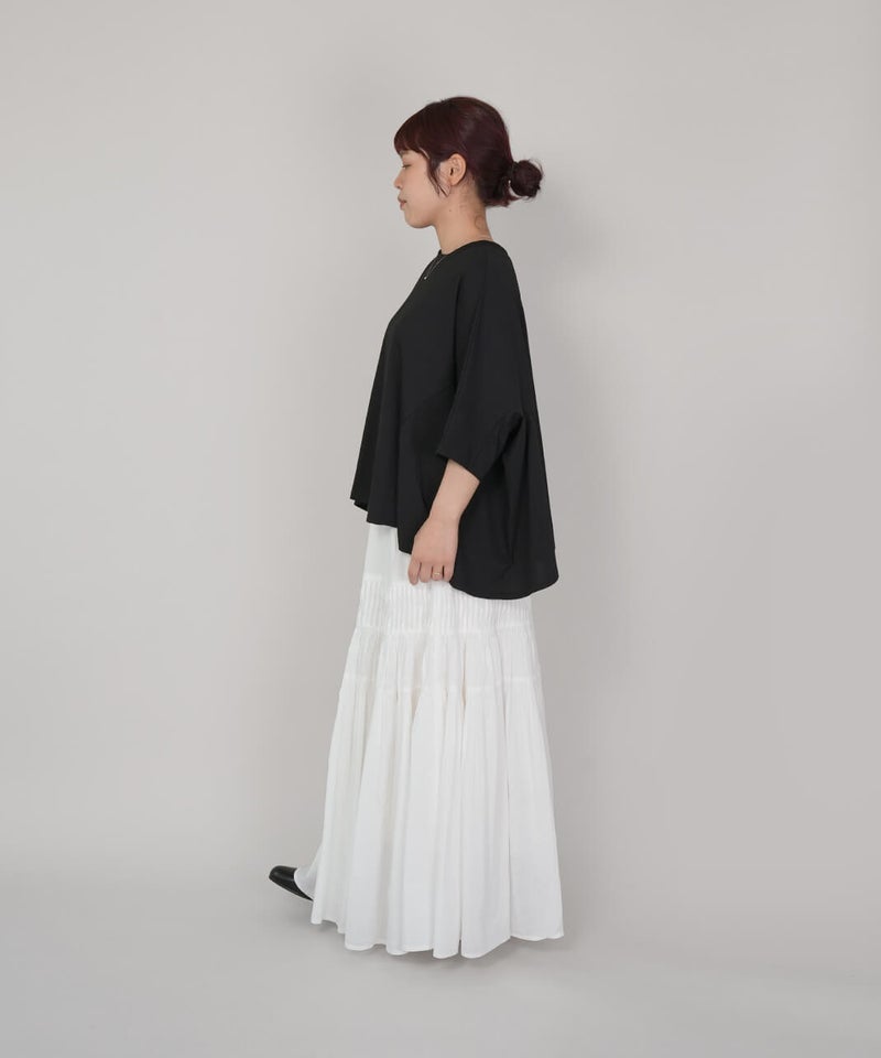 すっきりとした半端袖は、年齢の出やすい肘が隠れる絶妙な丈感です。