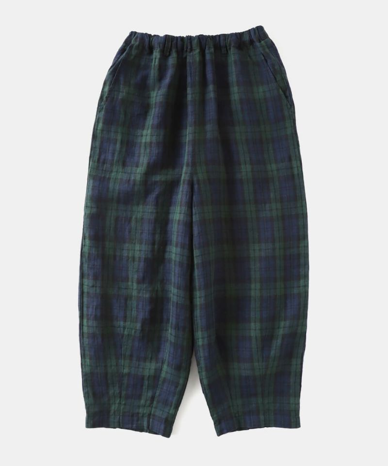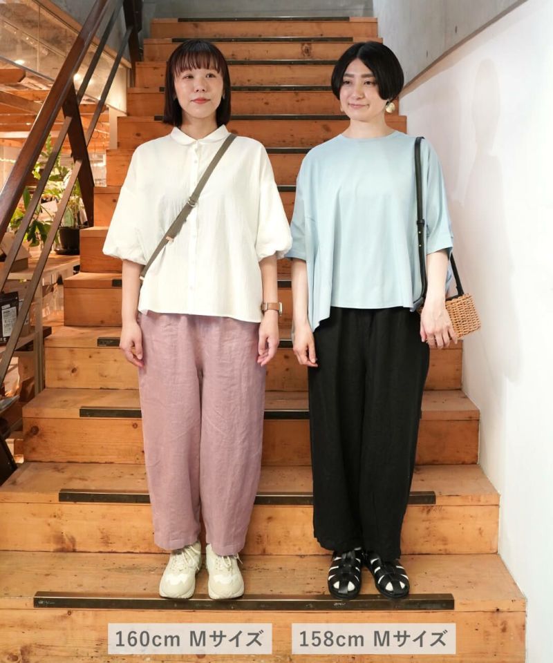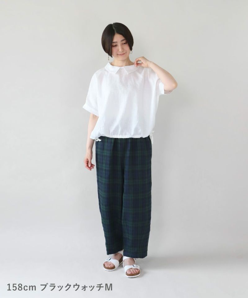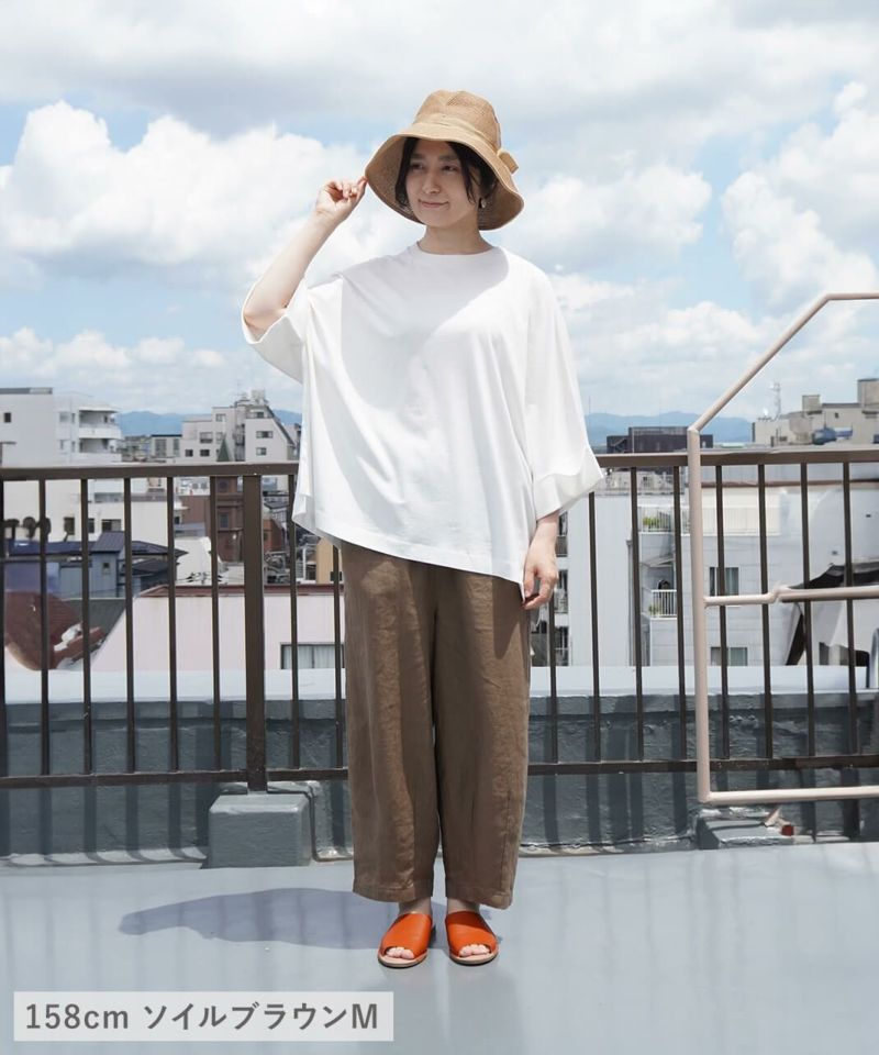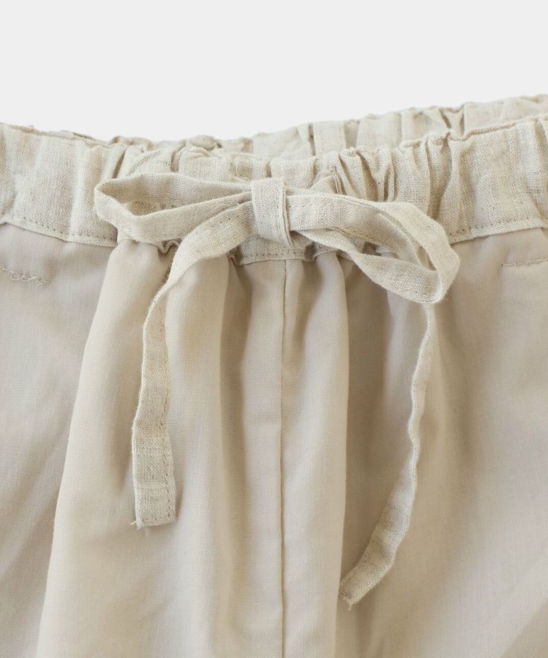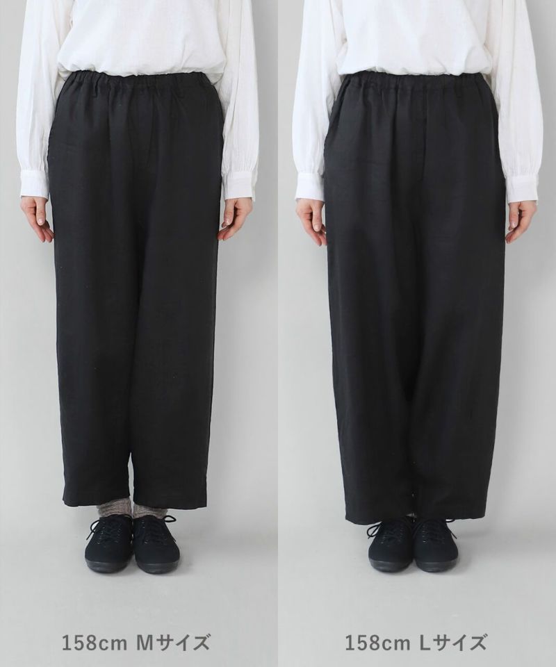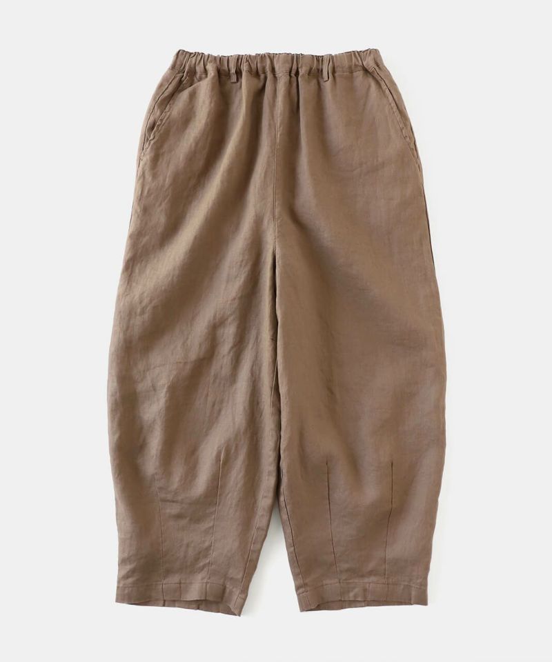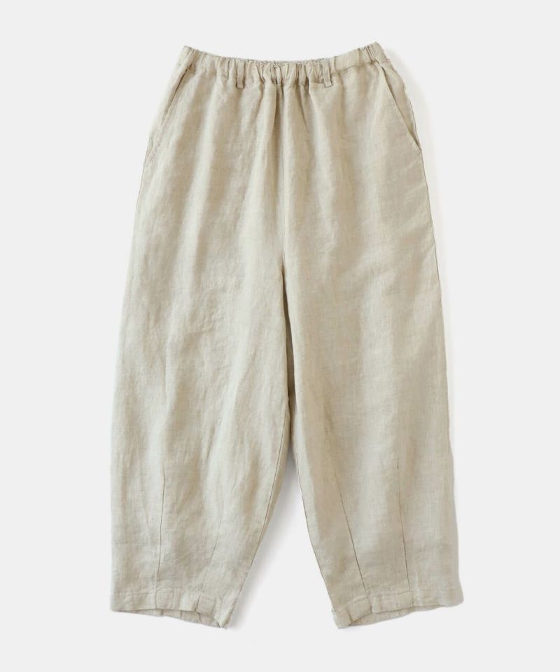 生地には柔らかな14番手リネンを使用し、ナチュラルな風合いに仕上げました。ゆったりとした履き心地で、裏地付きが嬉しいポイント。通年着回せる1着です。