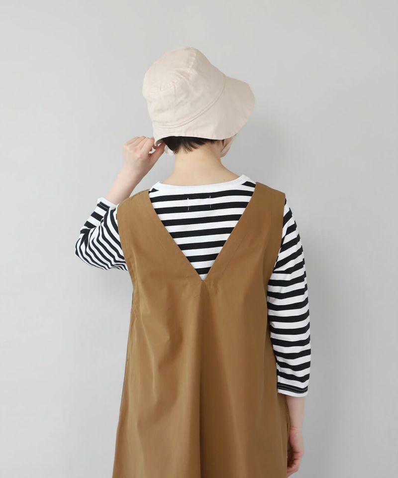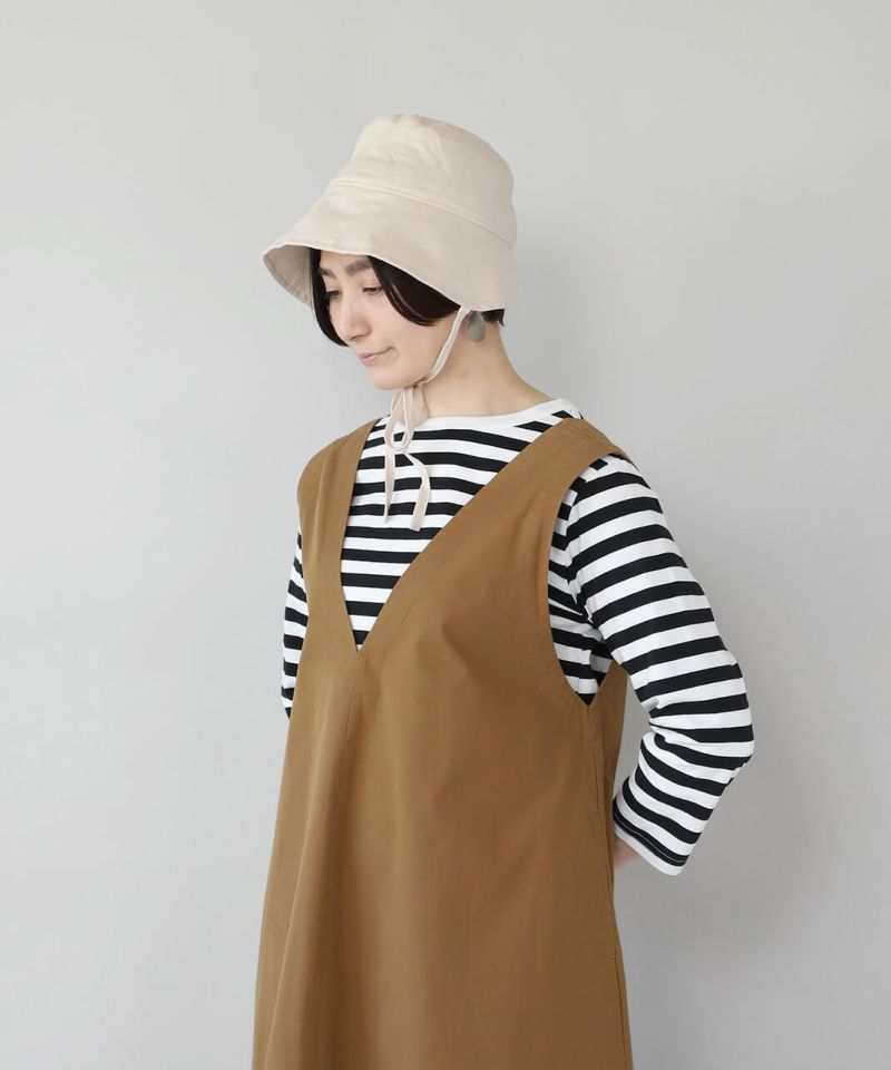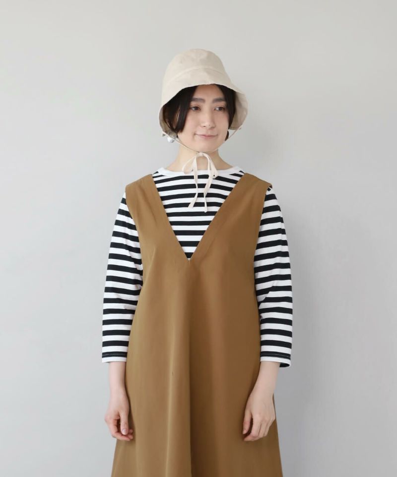 紐は顎下で結んで固定しても結ばずに垂らしてもデザイン性を楽しめます。