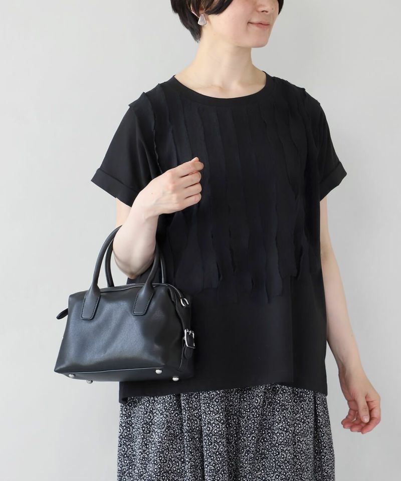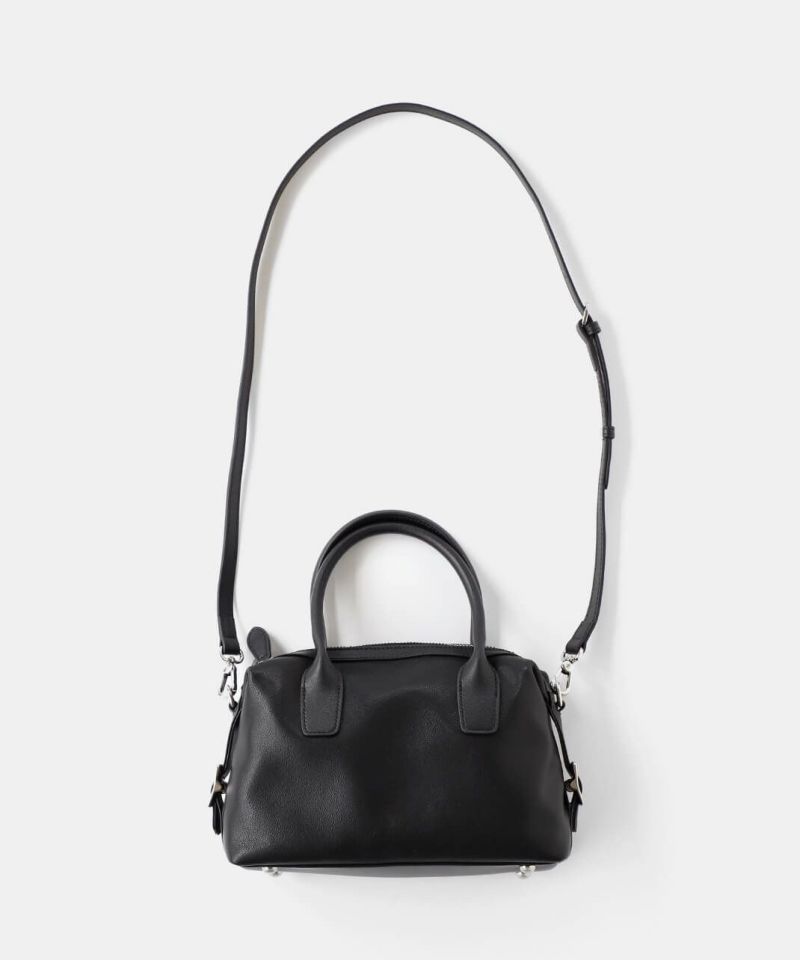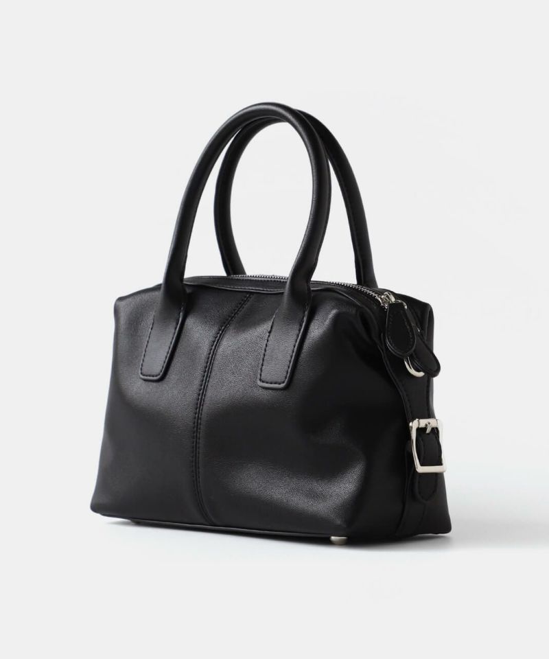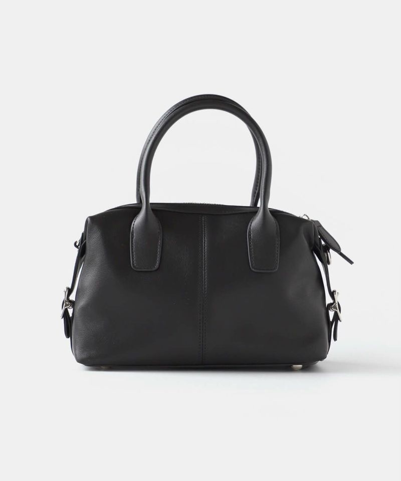 牛革のサイドにベルトのデザインがはいったハンドバッグ。 ショルダーストラップが付属している2WAY仕様です。 シボ感や光沢のないスムースな革の質感で、しっかりとした形は保ちながら適度に柔らかく扱いやすいバッグです。