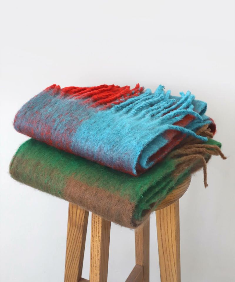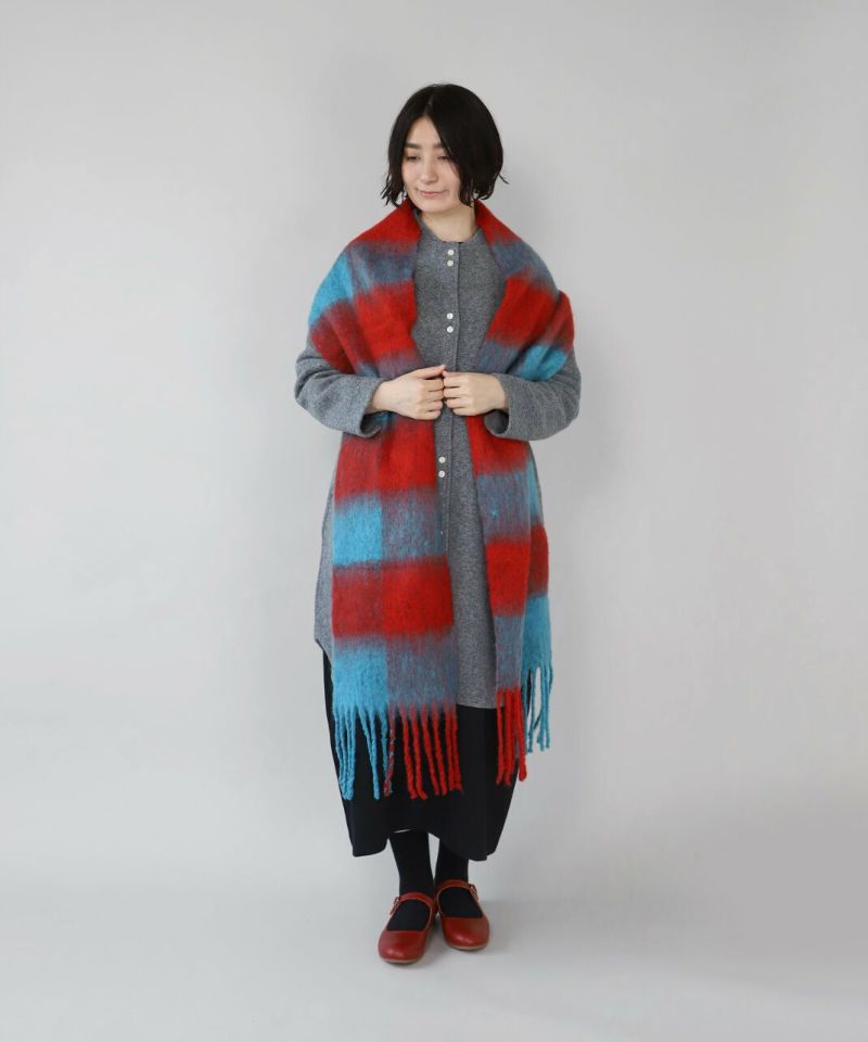 鮮やかな色彩と大きなチェックが印象的なストールです。 十分な長さはいろいろな巻き方を楽しめ、スタイリングの主役にもなります。 やわらかな肌触りと適度なボリューム感で、冷たい風からしっかり守ってくれます。 ギフトにもおすすめです。