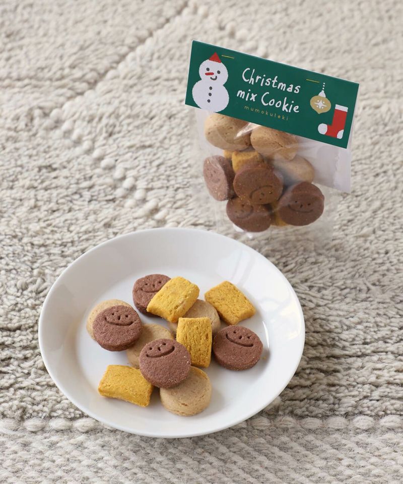 無添加ナチュラルビーガンクッキーの製造を得意とする「茎工房」さんに依頼し、mumokutekiオリジナルのクリスマスパッケージで仕立てた特別なミックスクッキーができました。 素材は、有機・無農薬、そして国産優先の厳選されたものだけ。卵・乳不使用のビーガンクッキーでありながら、どこか懐かしい食べごたえと、自然な甘みがしっかりと感じられるのが特徴です。 すべてのクッキーは、卵・乳を一切持ち込まない“コンタミフリー工房”で製造され、アレルギーをお持ちのお子さまにも安心してお召し上がりいただけます。 甘みにはコクのある含蜜糖を使用し、粉は風味豊かな北海道産小麦100%。さらに、5%しか取れない希少な国産菜種を自然圧搾したなたね油や、環境に配慮して生産された上質な有機パーム油を使い、素材そのもののやさしさをそのまま引き出しました。 今回は、2種類のミックスをご用意しました。