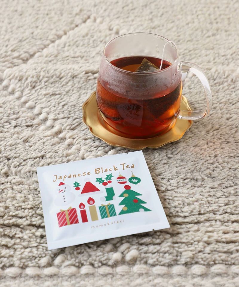 1925年創業、静岡市で製茶問屋とお茶カフェを営む老舗・山梨商店さんにお願いし、mumokutekiオリジナルのクリスマスデザインで仕上げた和紅茶のティーバッグです。 静岡県産の茶葉を使用し、緑茶用の茶葉を紅茶に仕立てることで、渋みを抑えたやわらかな甘みと、華やかに広がる香りが楽しめる一杯に。お茶そのものに自然な甘さがあるため、ストレートでも心地よく味わっていただけます。 ティーバッグタイプで手軽に淹れられ、忙しい時期のリラックスタイムにもぴったり。 mumokutekiオリジナルのクリスマスパッケージは、ご自宅用はもちろん、季節の贈り物にも喜ばれる温かなデザインです。 やさしい味わいと香りを、冬のひとときにぜひどうぞ。