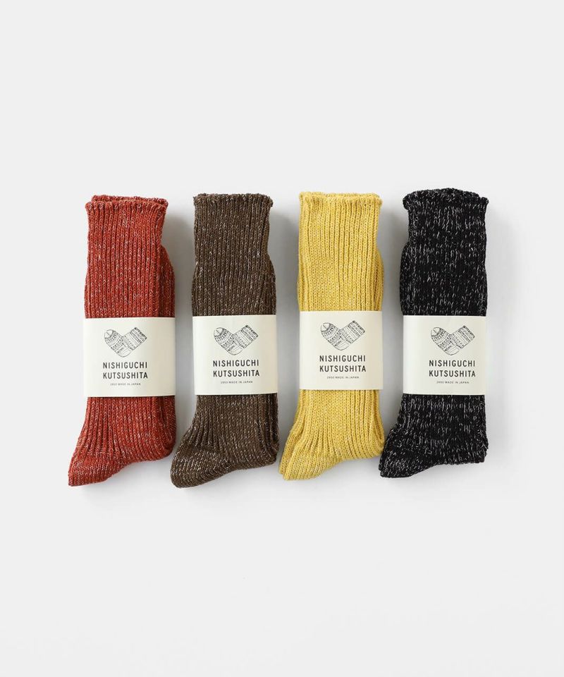 NISHIGUCHI KUTSUSHITAは1950年から靴下づくりをつづける、日本のファクトリー生まれの靴下ブランドです。履く人のことを真面目に考えてつくること。「はくひとおもい」という言葉に込めた想いが、私たち靴下づくりの原点です。良質な天然素材、新旧マシンを生かした編み方、時代にとらわれないデザイン、そして価格。一つ一つのこだわりは、すべて履く人のためを追求した答えです。トレンドだけを追い求めるのではなく、長く愛用できる定番をつくり続けます。