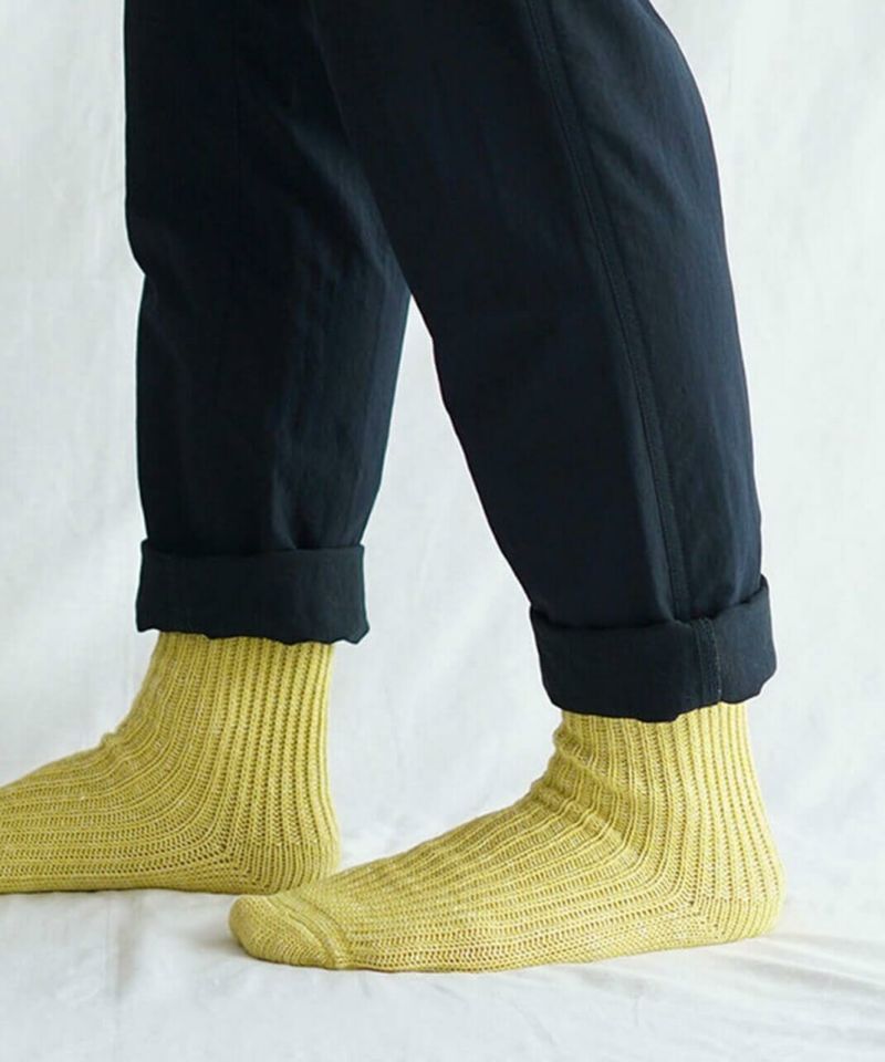 落ち綿のヴァージンコットンを100%使用した糸にシャリ感と通気性があるヘンプを合わせた、環境にやさしく夏らしいシャリ感が出る味わい深い靴下。 コットンを紡績する際、糸にならなかった短繊維のヴァージンコットンを特殊な紡績機にかけて糸にしました。 短繊維ならではの履けば履くほど風合いが出てきて、まるでジーンズが味わいが出てくるようにヴィンテージ感が出てきます。 履けば履くほど愛おしくなる、愛着がわくそんな靴下です。 コットンに清涼感、シャリ感があるヘンプを合わせて編んでいるので、夏らしいシャリ感がここちよく、爽やかな心地です。 ヘンプ自身も農薬をほとんど必要としない植物なので環境にやさしい。