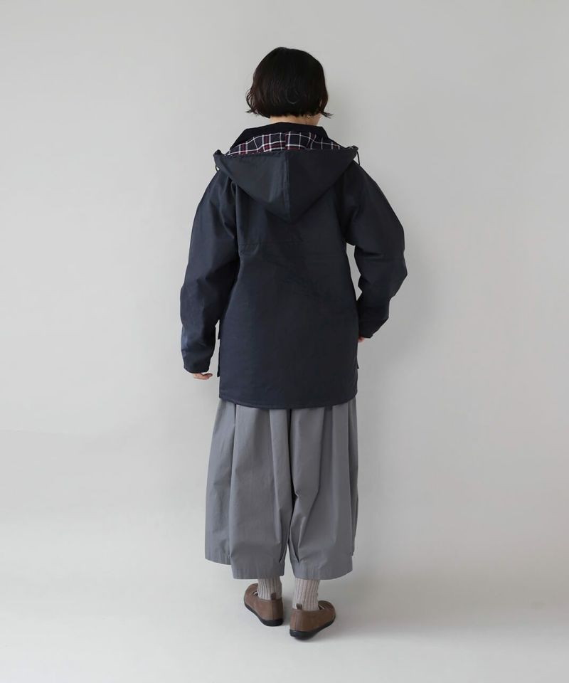 イギリスのファクトリーブランドRockall Outdoor (ロッコールアウトドア)。代表的なアイテムのオイルドジャケットです。 襟元には太畝のコーデュロイ、フラップ付きポケットの上に配置されたハンドウォーマーポケット、フロントの2WAYリングプルジップなど魅力的なディテールが詰まっています。ボタンで取り外しのできる、同じワックスコーティングを施したフード付き。 袖口の内側に厚みのあるリブを配置することで冷気の侵入を防ぎ防寒性も高めています。肩周りはラグランスリーブを採用することで、いろんなコーディネートに合わせやすく、永く愛用できる1着です。 着用を重ねる事でワックスコーティングが少しずつ乾き、独特の表情へと変化する経年変化も楽しめます。