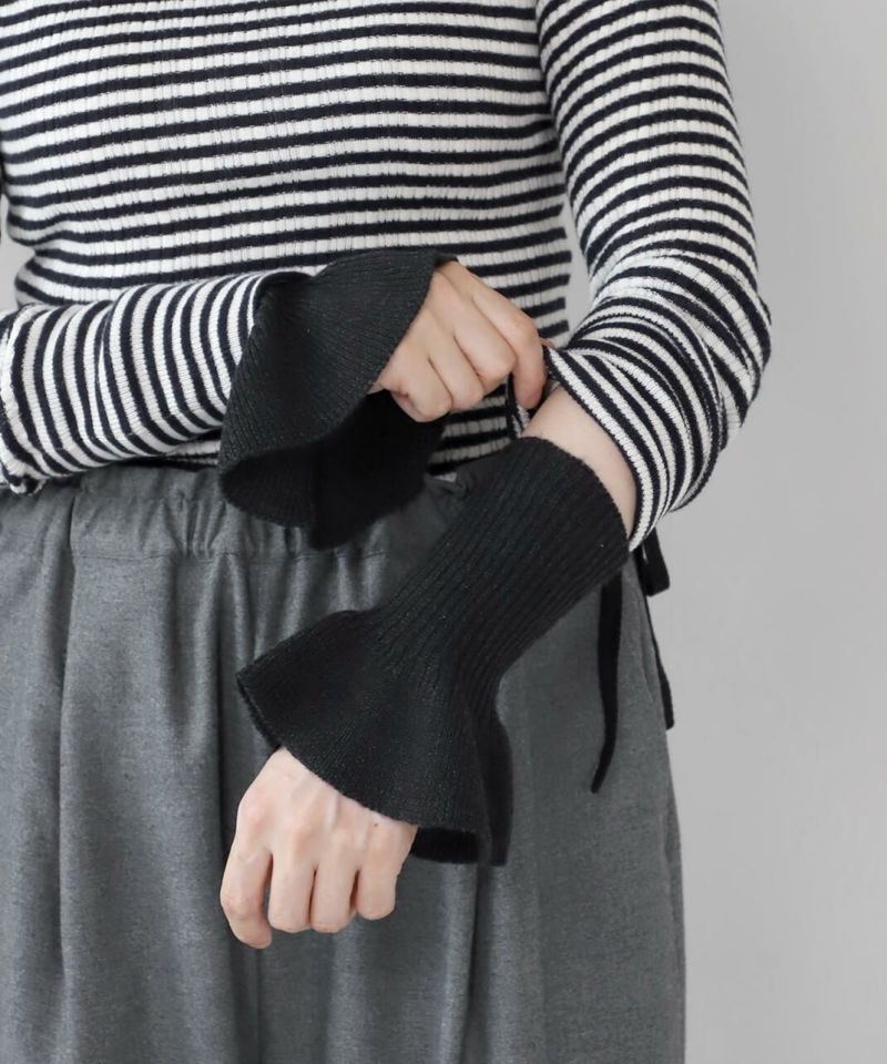 つけ袖風のデザインで、シンプルなトップスやアウターに華やかさをプラスするアームウォーマー。 ほどよい大きさのフリルがアクセサリー感覚で楽しめ、コーディネートのアクセントに。 手首を温めながら、上品さも演出してくれる嬉しいアイテムです。