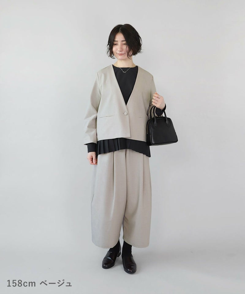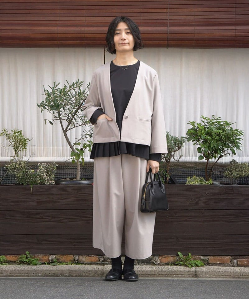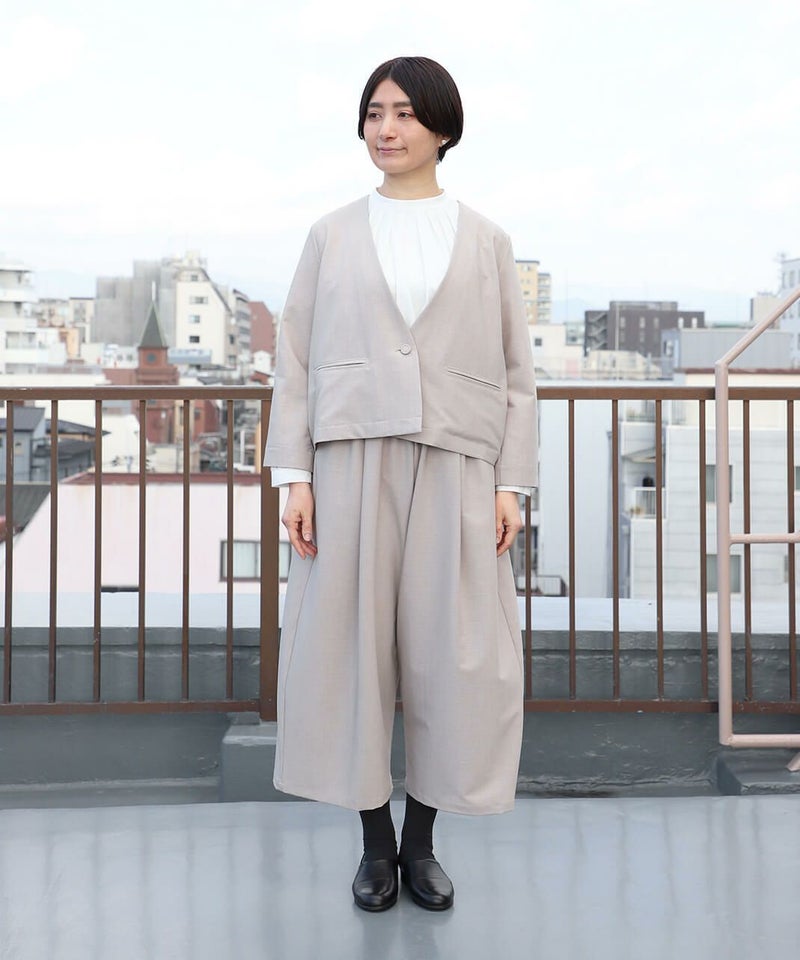 同素材のパンツと合わせてセットアップでの着用も可能です。