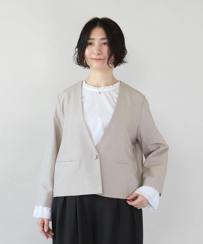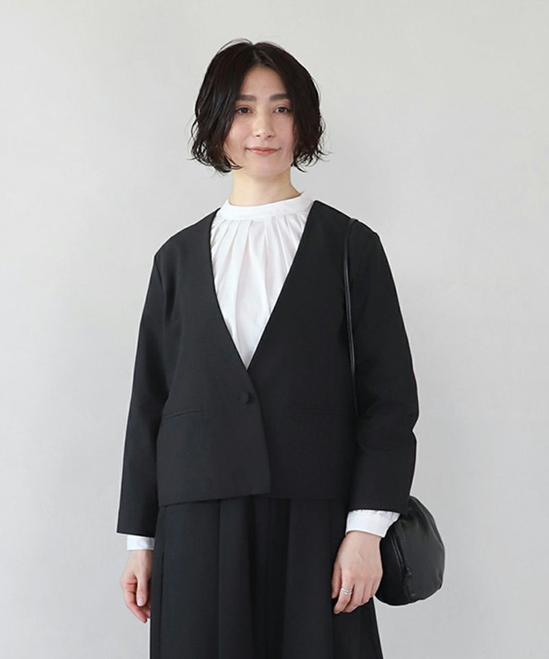 しっとりした肌触りのVネックショートジャケットです。