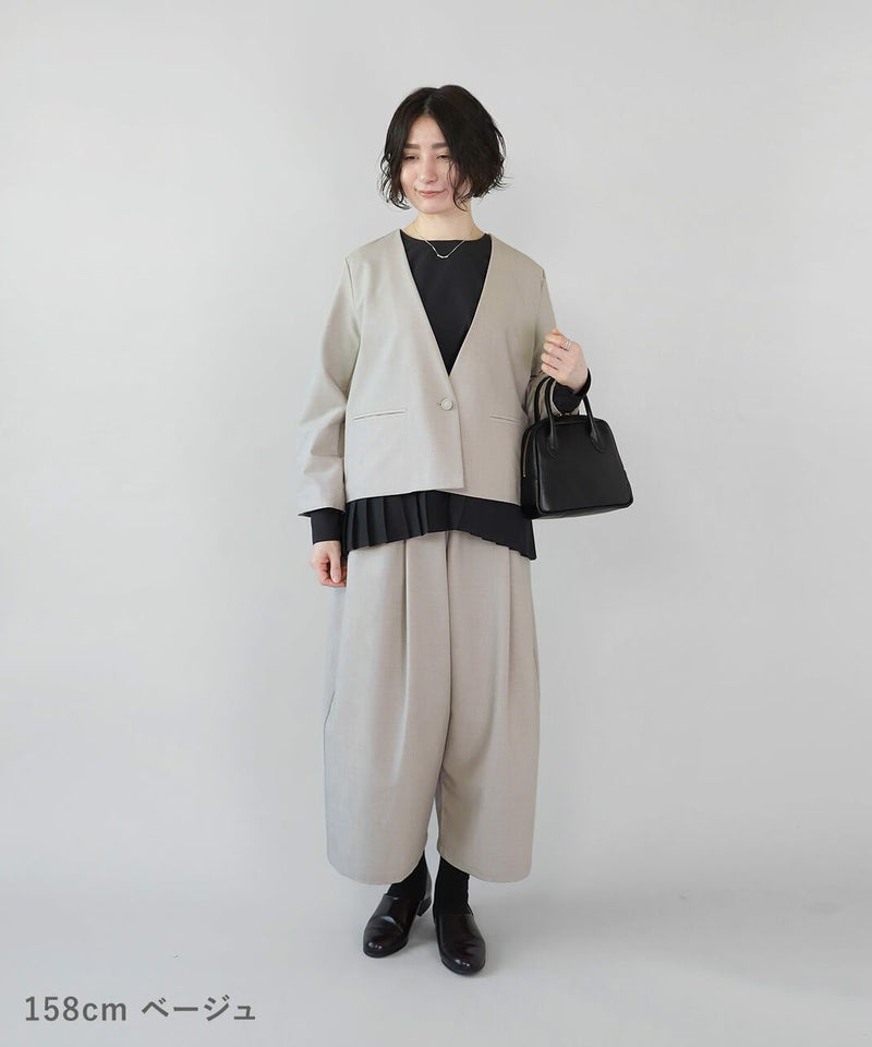同素材のジャケットとセットアップでの着用もおすすめです。