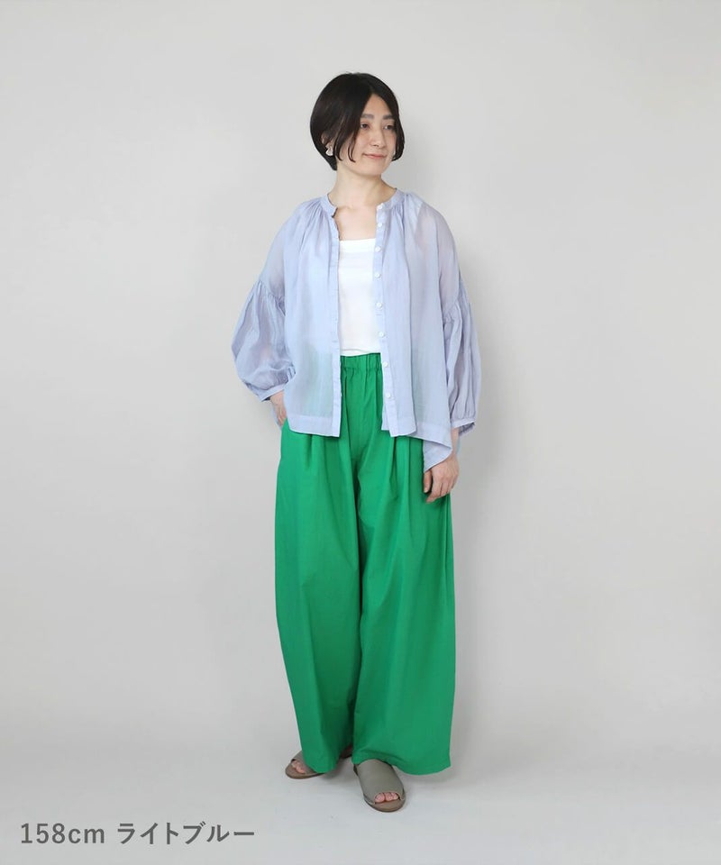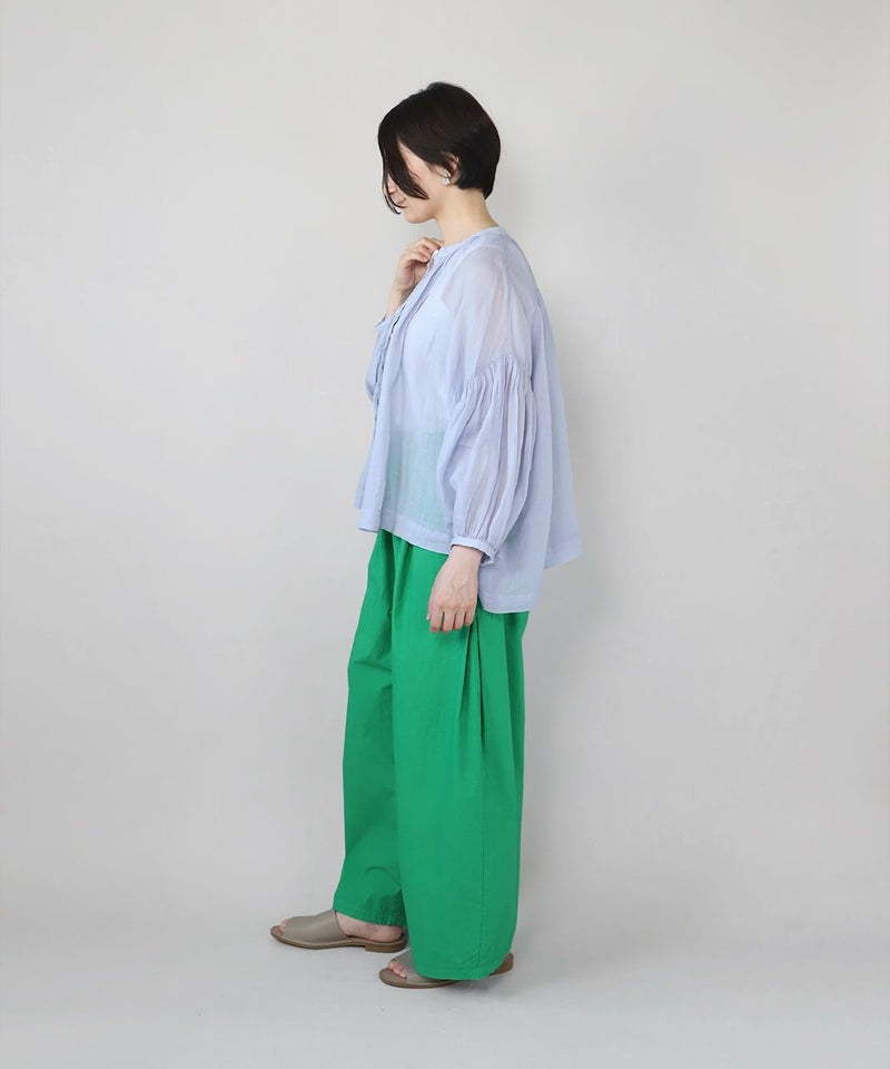 透明感のある軽やかな生地は清潔感を与え、甘くなりすぎず、ナチュラルなスタイルにもきれいめな装いにもなじみます。
