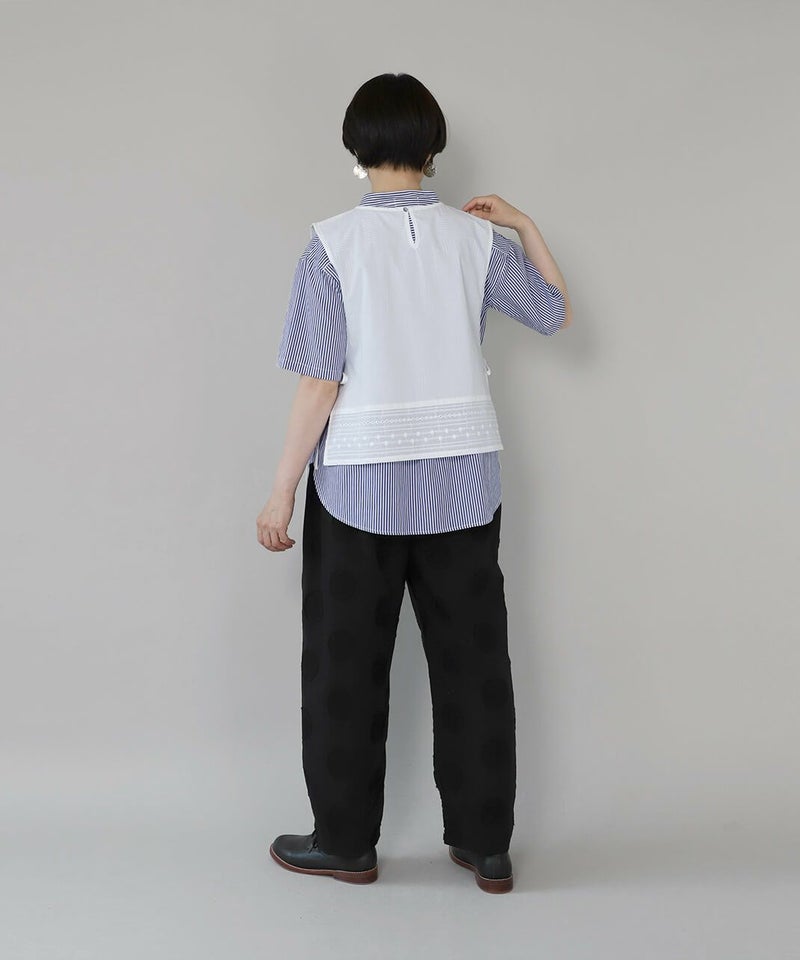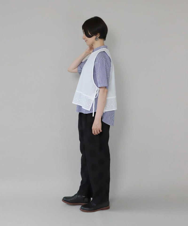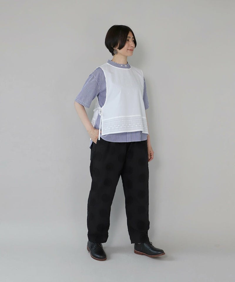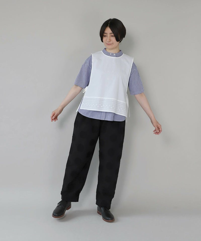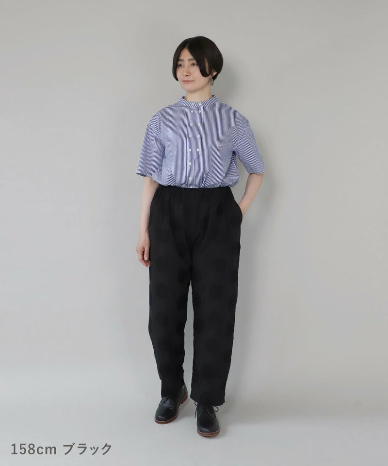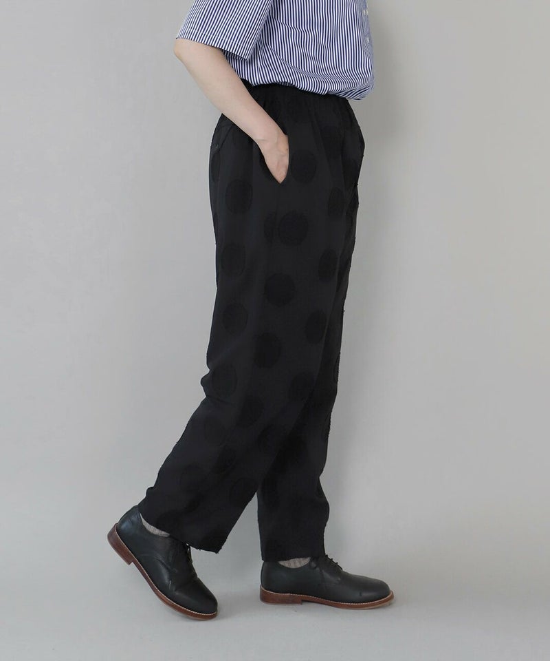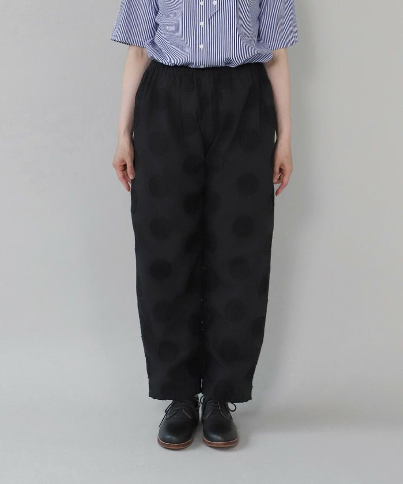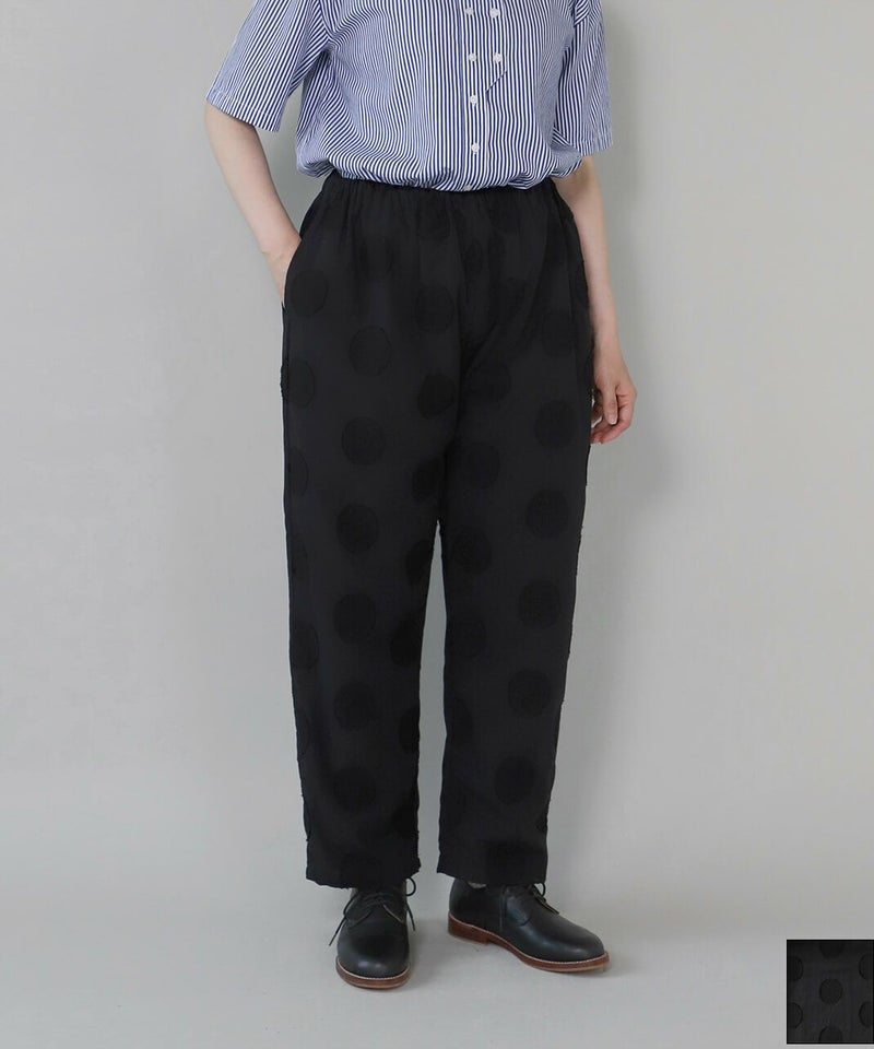 コットンリネンのドットジャガード生地を使用したテーパードパンツです。