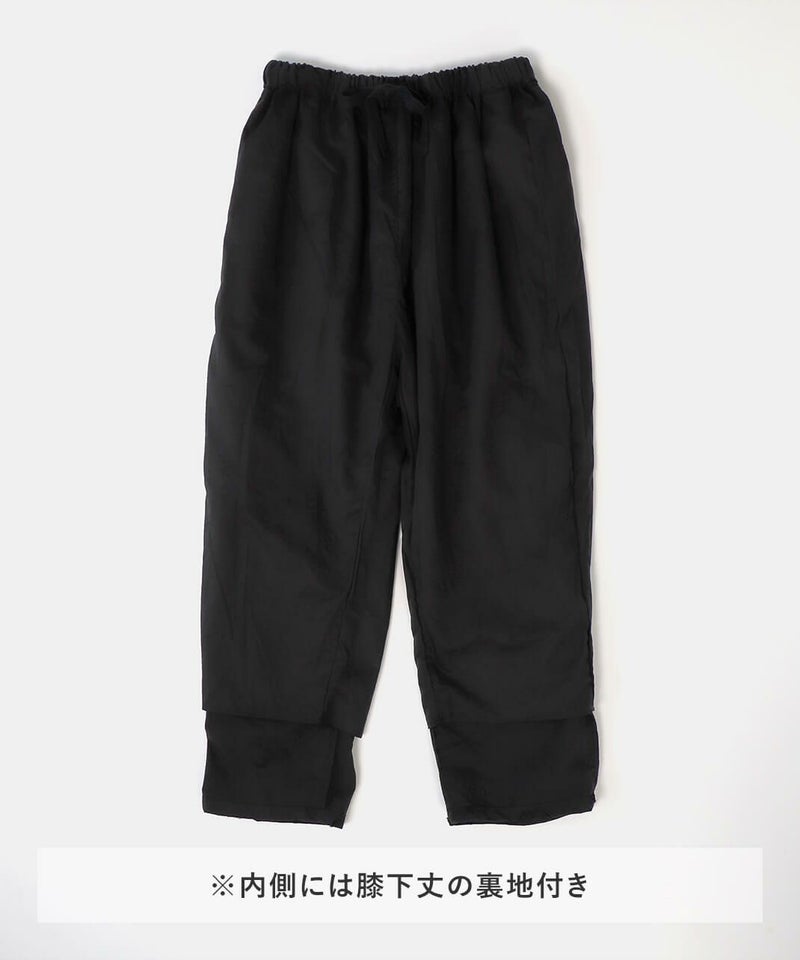ウエストはたっぷりとゴムが入ってよく伸び、さらに内紐付きのためサイズ調整が可能。リラックスした履き心地です。裏地もしっかりと付いているため透ける心配もありません。同色のドットジャガードはコーディネートしやすく、シルエットもとてもきれいな1着です。