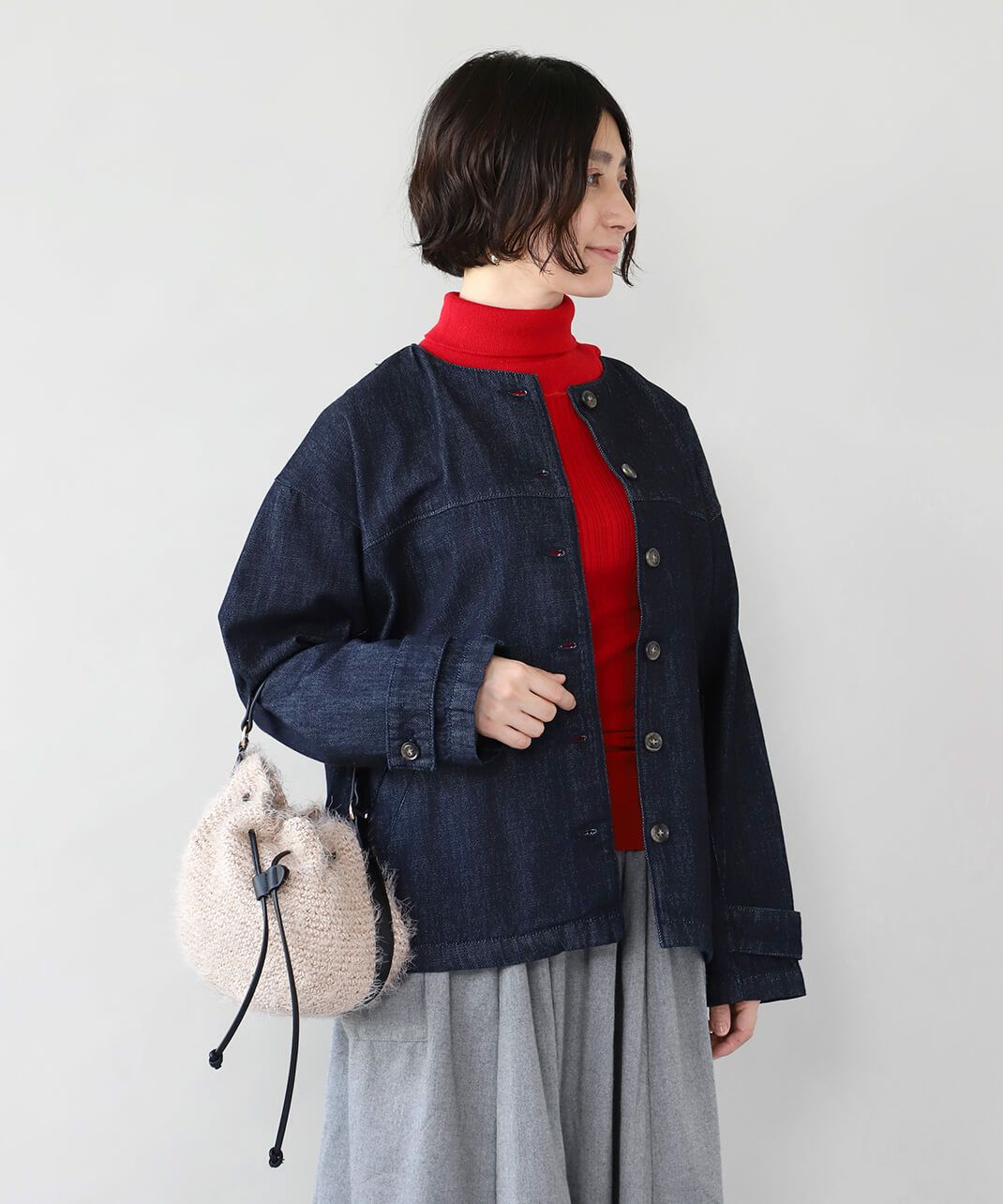 ノーカラー中綿ブルゾン