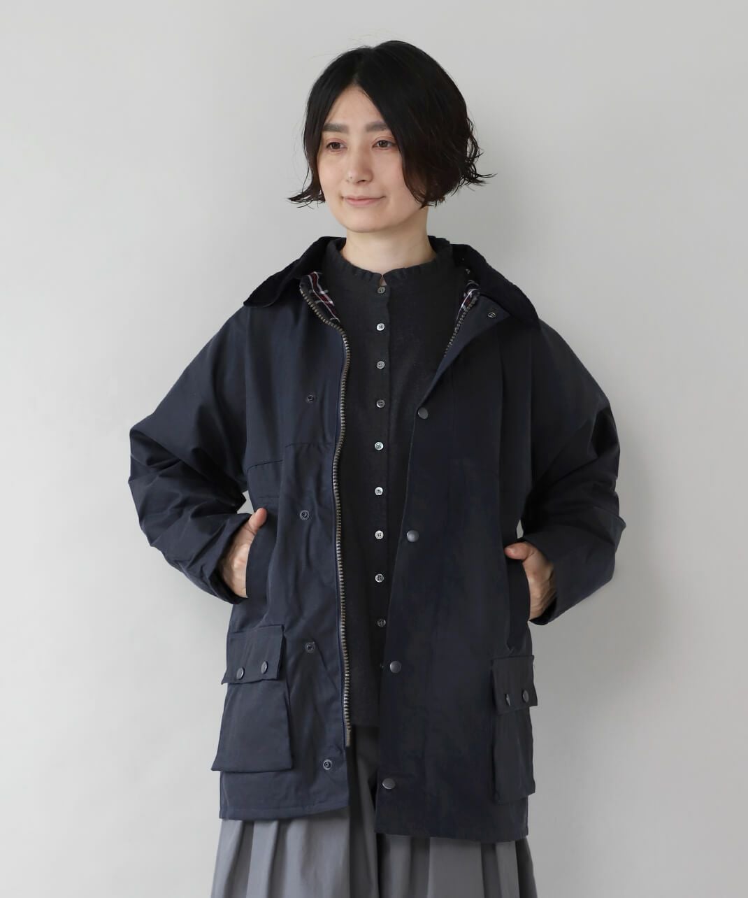 襟元コーデュロイの