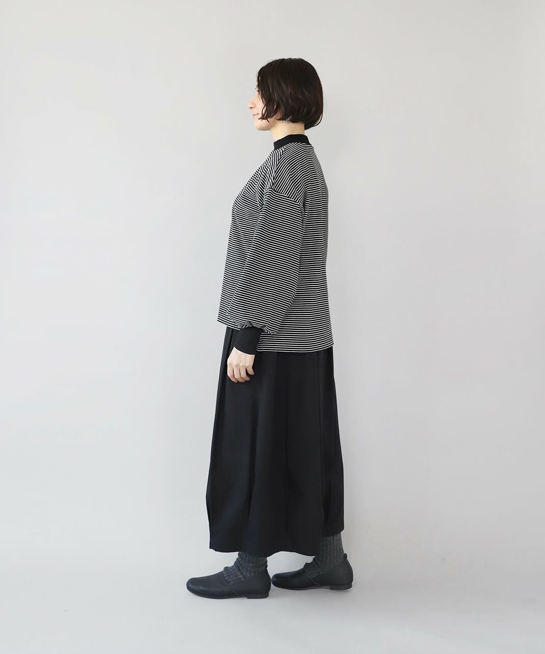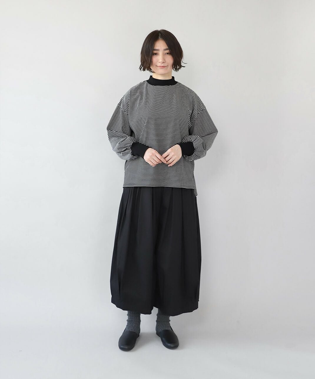 ハイネックボーダーカットソー