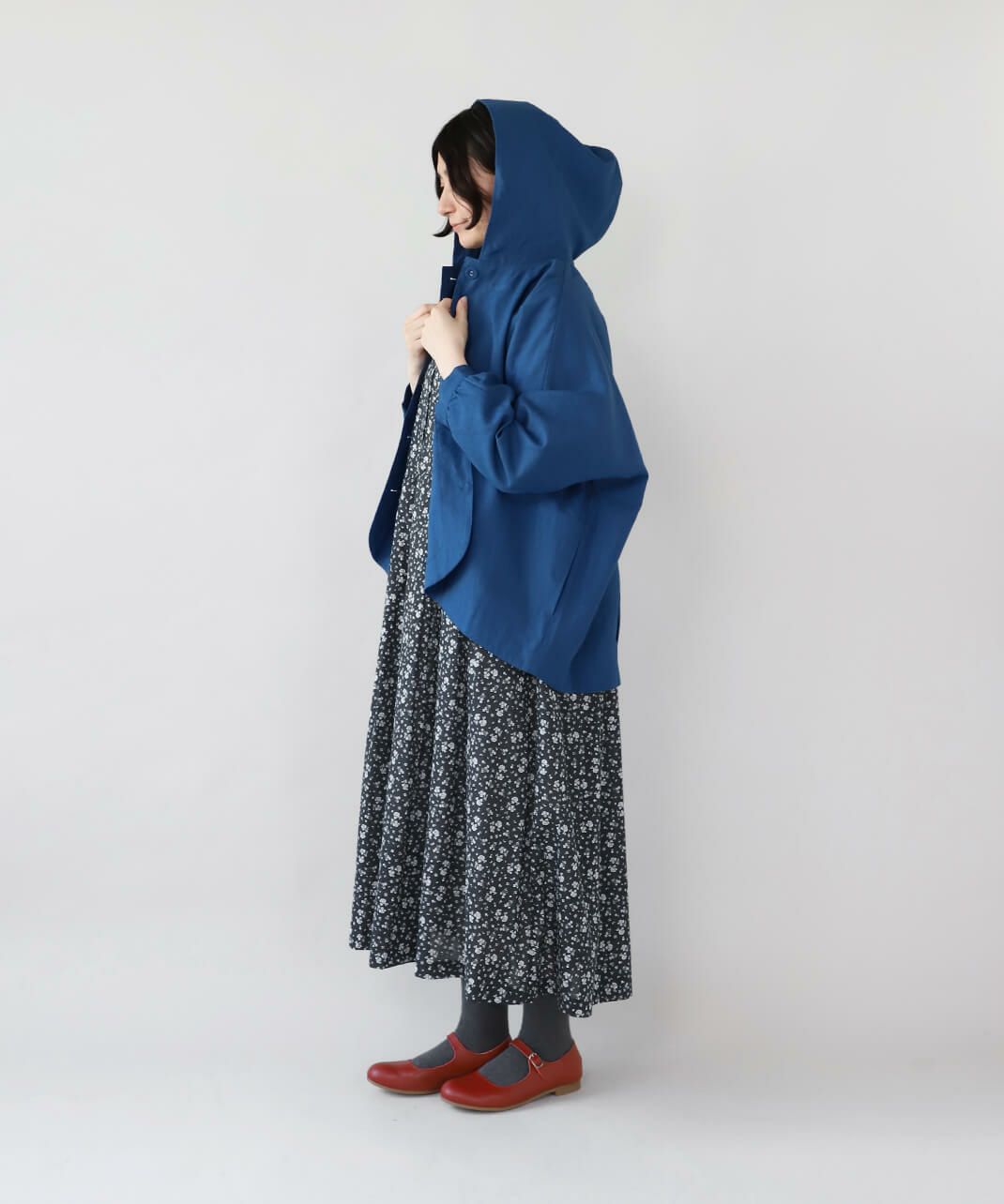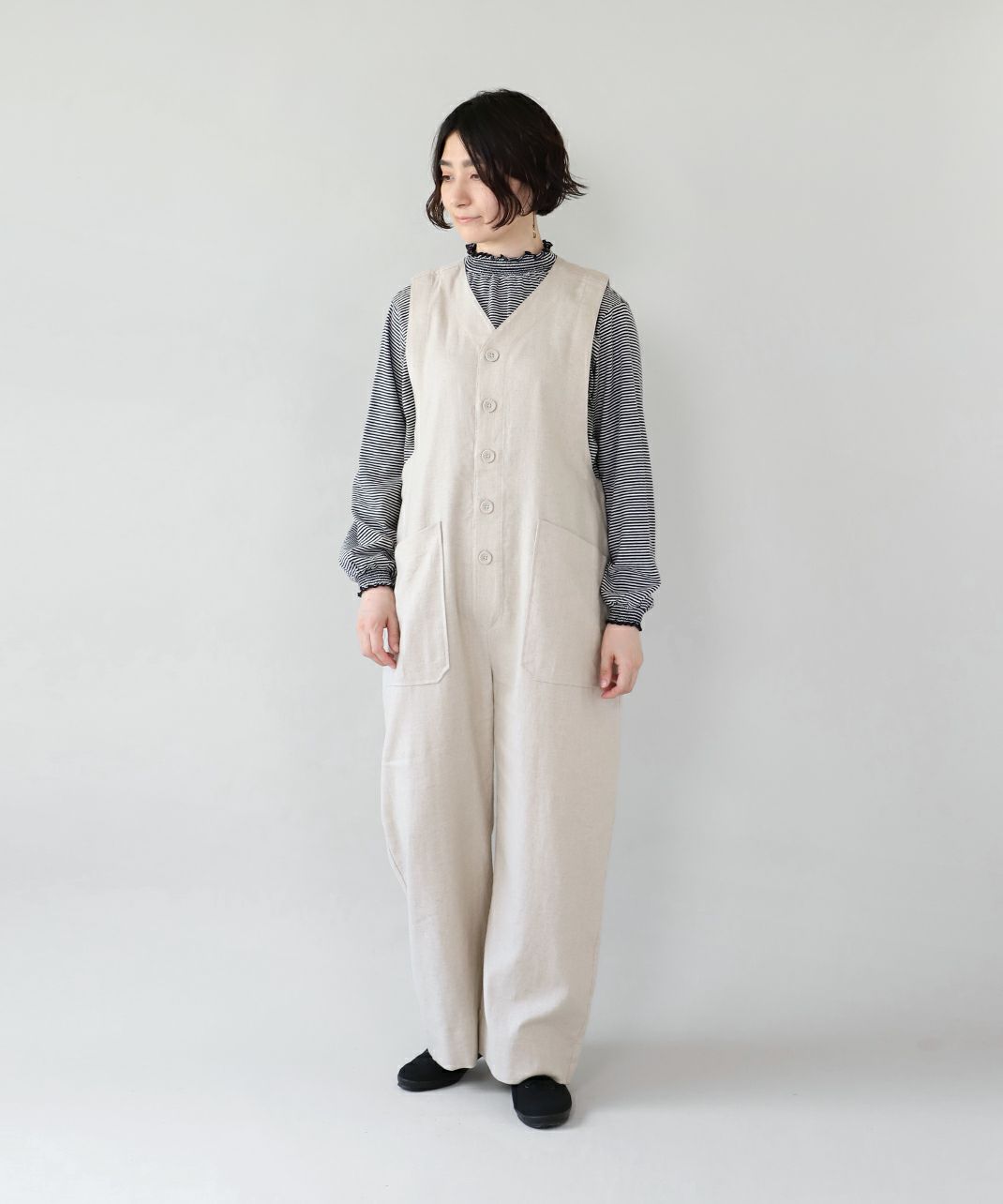 中綿入りノーカラーロングコート