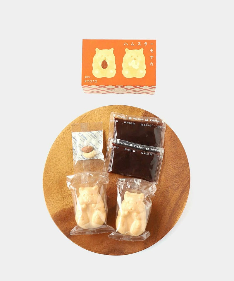 ハムスターをかたどった最中皮、小袋のあんこ、ナッツがセットになっています。 香ばしく焼き上げた最中皮の中に、上品な甘さの北海道産小豆を使用したつぶ餡をご自身でたっぷりと詰め込んでいただきます。 ハムスターのおなか部分が少しくぼんでいるので、付属のナッツを置いて愛らしい姿をお楽しみください。