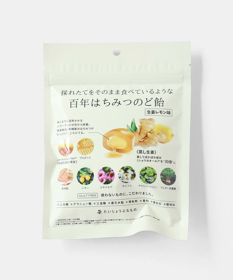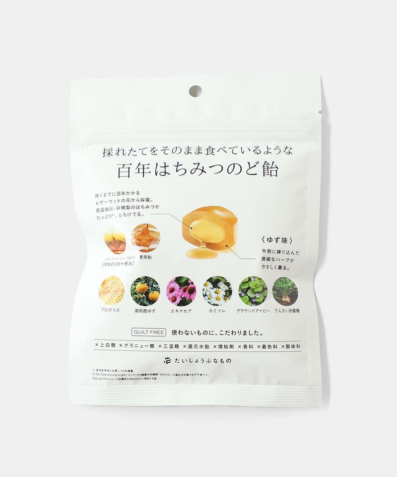 「美味しくないと、いくら原料にこだわっても喜んでもらえない」という想いから、美味しさにもこだわり、大人から子供まで美味しいと言ってもらえる飴を目指して開発された、百年はちみつのど飴。