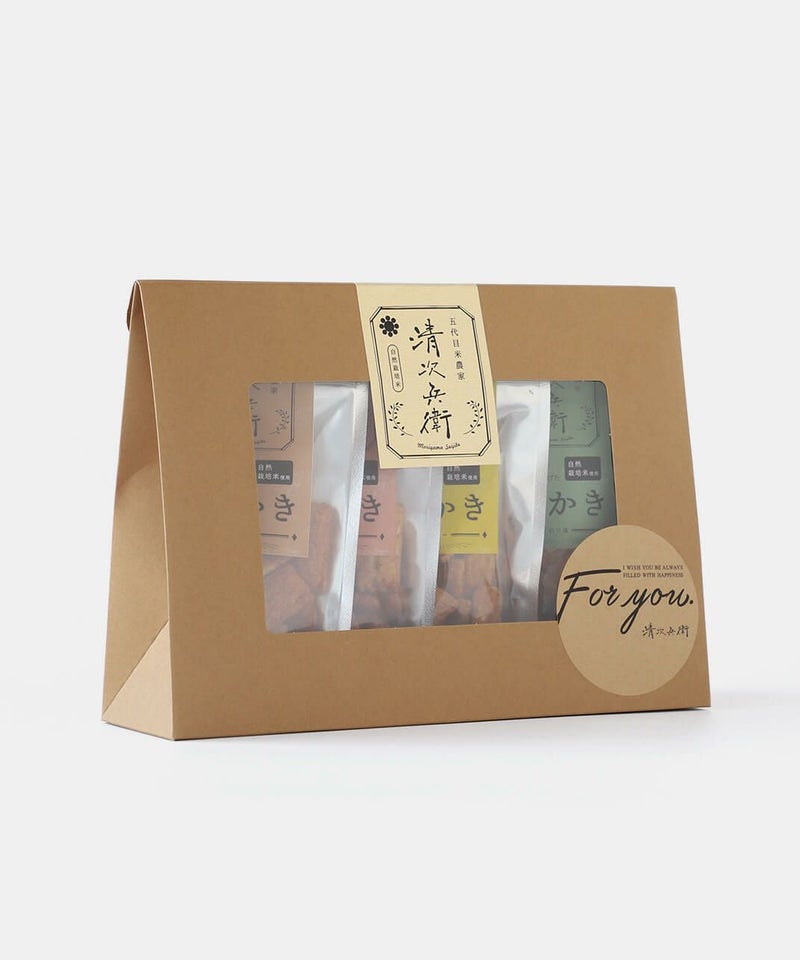 Gift Setでは、人気の醤油・のり塩・七味・カレーをセットにしました。 日常のティータイムや年末年始の手土産、大切な方への贈り物としておすすめです。 ナチュラル志向の方にぴったりの、「安心と美味しさ」を両立した一品です。