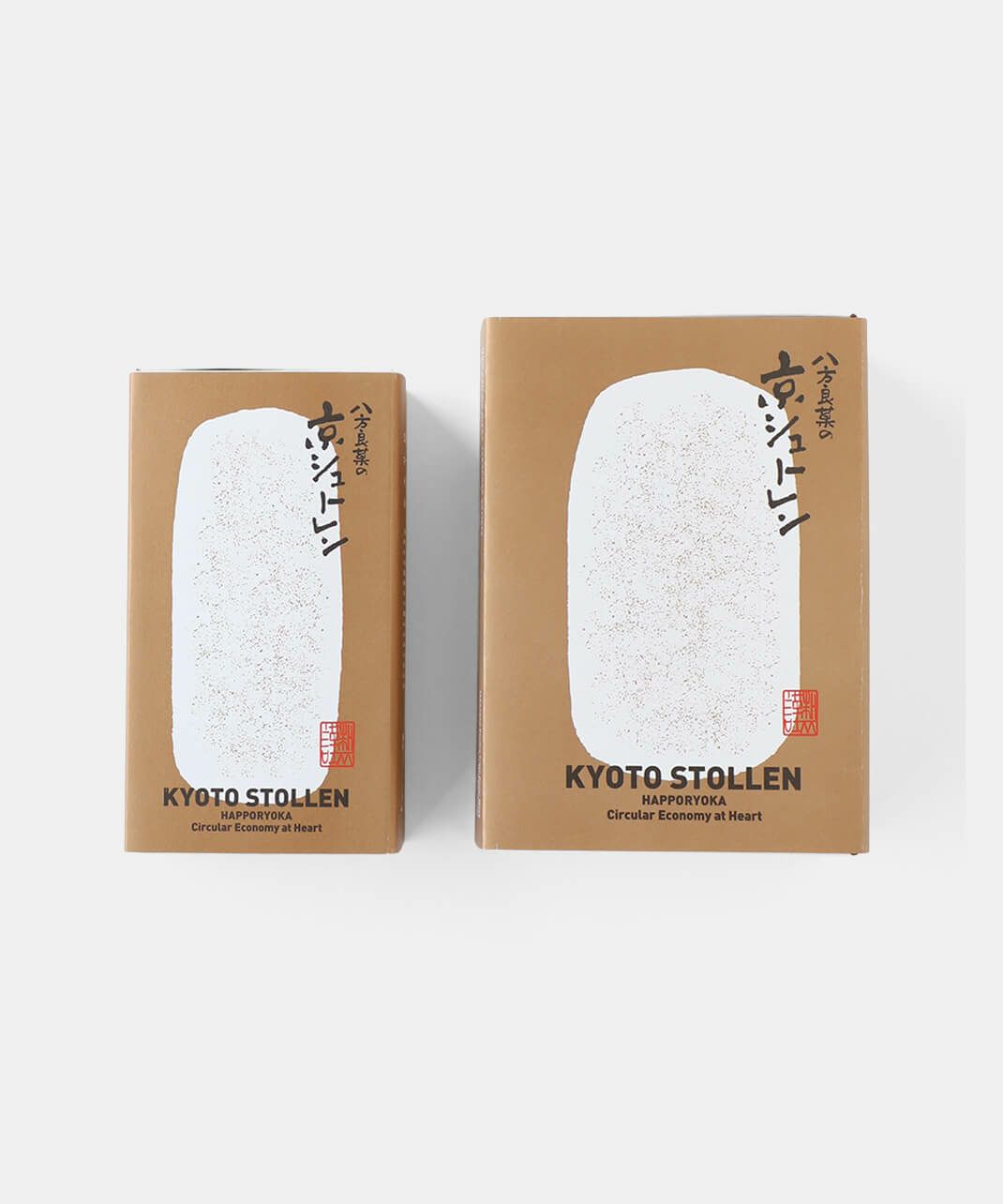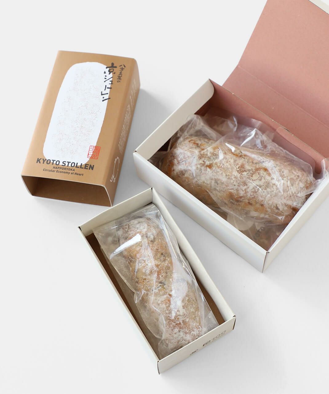 梅酒の梅の実、生八ッ橋、酒かす、おから、レモンの皮───。 京都の老舗や福祉作業所と連携し副産物・規格外品に向き合ったからこそ、「和」を感じられるシュトレンができました。全体重量比の約30%にロス食材を活用し、その他原材料には極力こだわりある国産材料を使用したPlant-Based品です。 製造は京都・大阪・兵庫・滋賀の福祉作業所が担当しています。