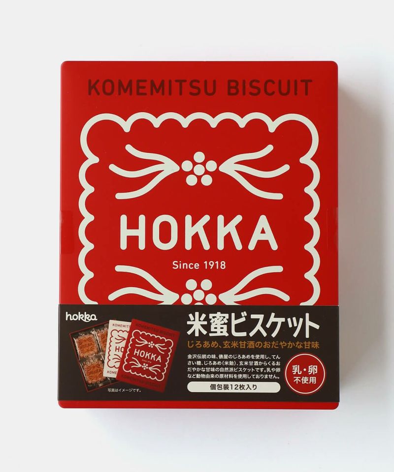 北陸製菓が手がける〈hokka〉シリーズの「米蜜ビスケットギフト缶」。 やさしい甘さと香ばしさが広がる、素朴で懐かしい味わいのビスケットです。 砂糖の代わりに米飴や黒糖を使用し、からだにやさしい素材で丁寧に焼き上げました。 どこかほっとする味わいを、かわいらしいデザイン缶に詰め合わせ。 贈りものや自分へのご褒美にもぴったりの、心あたたまるお菓子です。