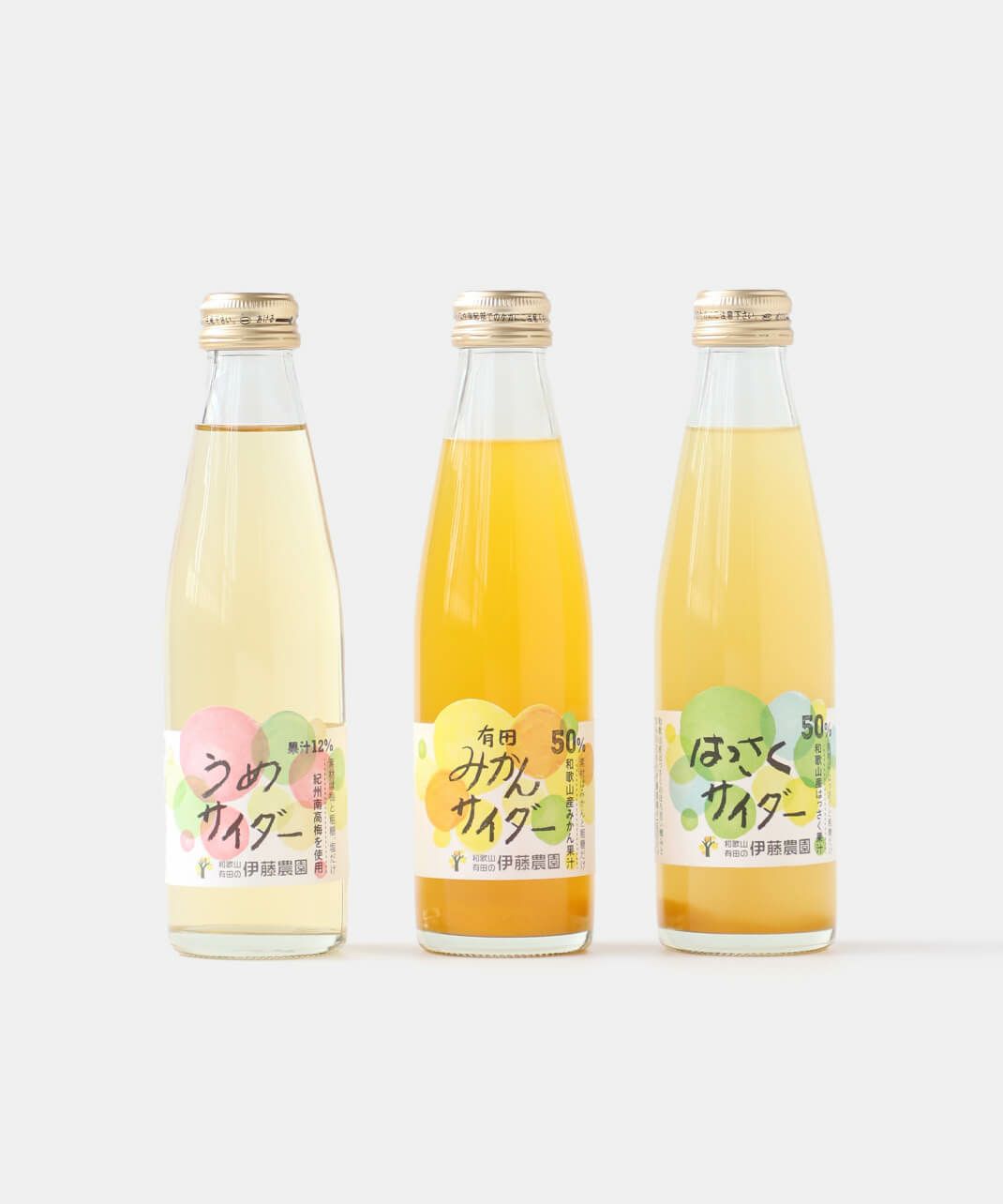 伊藤農園と創業三百年の老舗酒造・能勢酒造が共同開発した、和歌山県産の果汁をたっぷり使用したサイダーです。 細かな泡とすっきりした味わいがのど越しよく、後口すっきり。 伊藤農園オリジナル製法の、皮や袋の苦み・アクが入らないよう果肉だけを搾ったみかん果汁を使用し、 和歌山県産の果汁をたっぷり50%配合しているので、搾りたての果物の美味しさが広がります。
