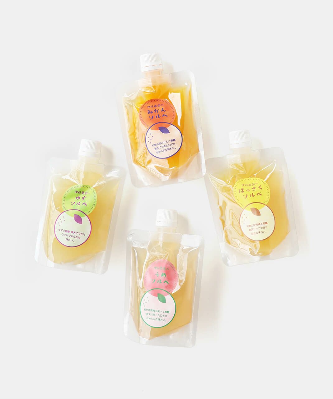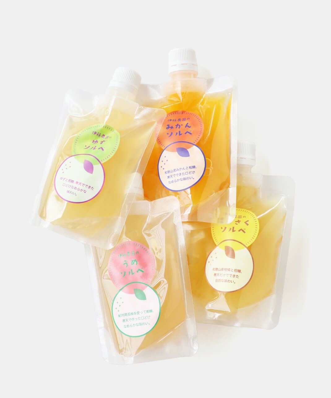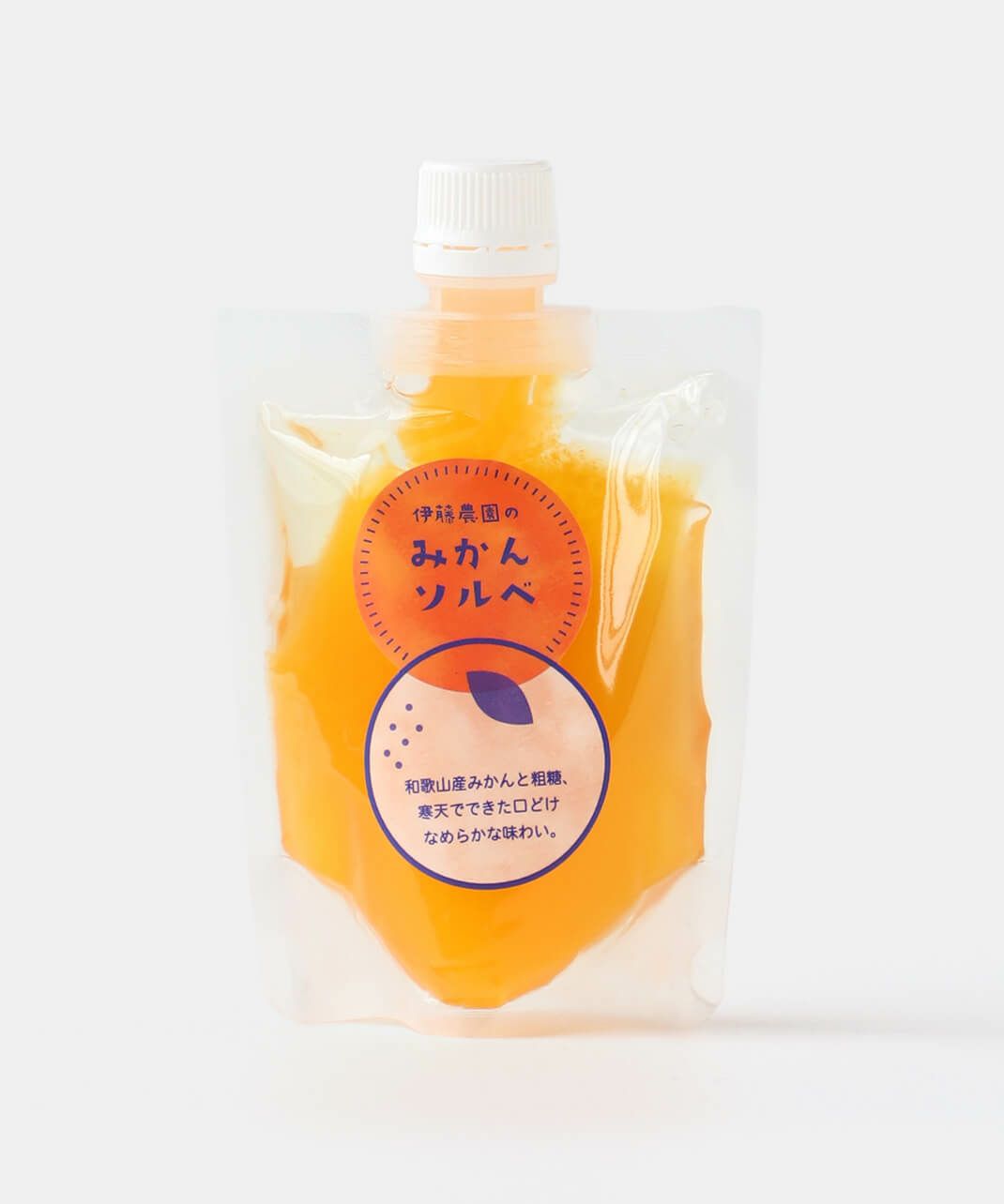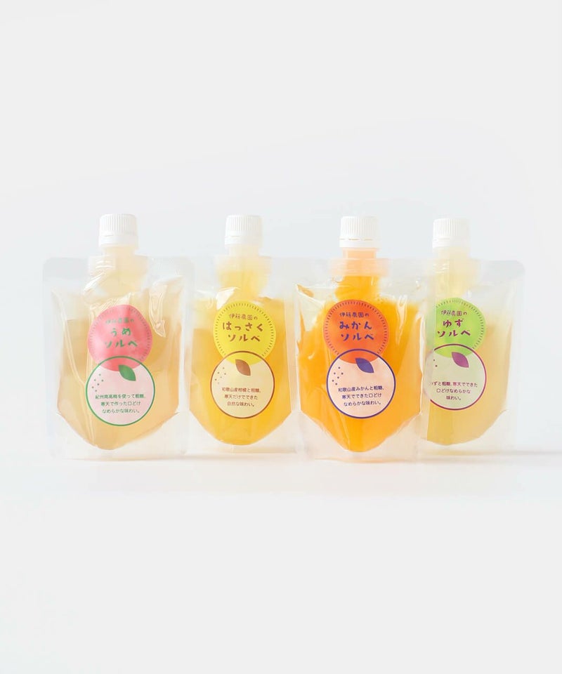 食物繊維たっぷりの寒天を使っているため、シャリシャリなのになめらかな食感が特徴の寒天ソルベ。 (ソルベとは、果汁やリキュール、もしくはそれらを含んだシロップを凍らせて作った、フランス生まれの冷菓です。) さらにミネラル豊富な粗糖で味を整えることで、和歌山県産柑橘果汁たっぷりの味わい広がる、濃厚でなめらかなソルベができました。 食べる前に凍らせて、お好みの硬さでお召し上がりください。
