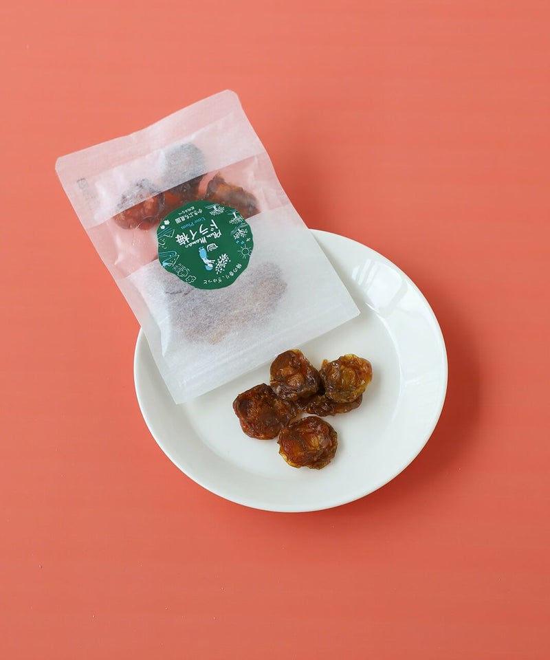 南高梅の優しい酸味とほんのり甘く、ほどよい柔らかさに仕上げています。 一粒口にいれると梅の香りが口いっぱいに広がります。 ジップ付きの小袋タイプなので、持ち運びにも便利です。ドライブのお供や、仕事の息抜きにおすすめです。
