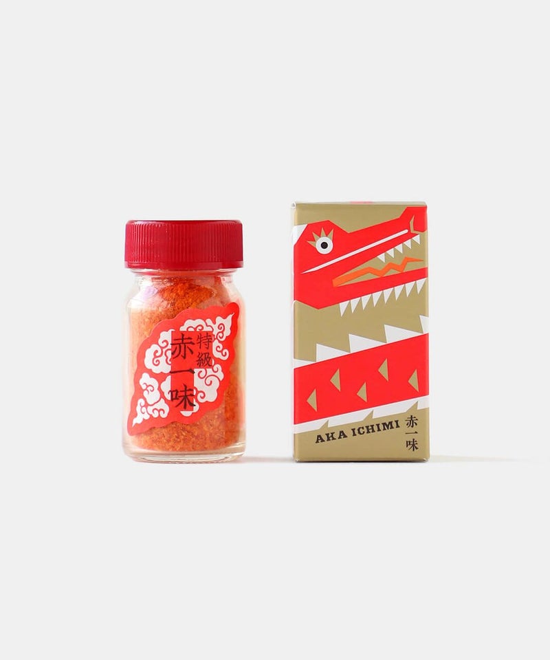 佐藤紅商店の「特級やくみ」一味・七味シリーズは、厳選唐辛子の鮮烈な香りと辛味が特徴。 料理の旨味を引き立て、そばや鍋物はもちろん日常の一皿にも使いやすい、風味豊かな名脇役です。 高梁川に住んでいたという伝説の龍をモチーフとしたデザインが施されています。