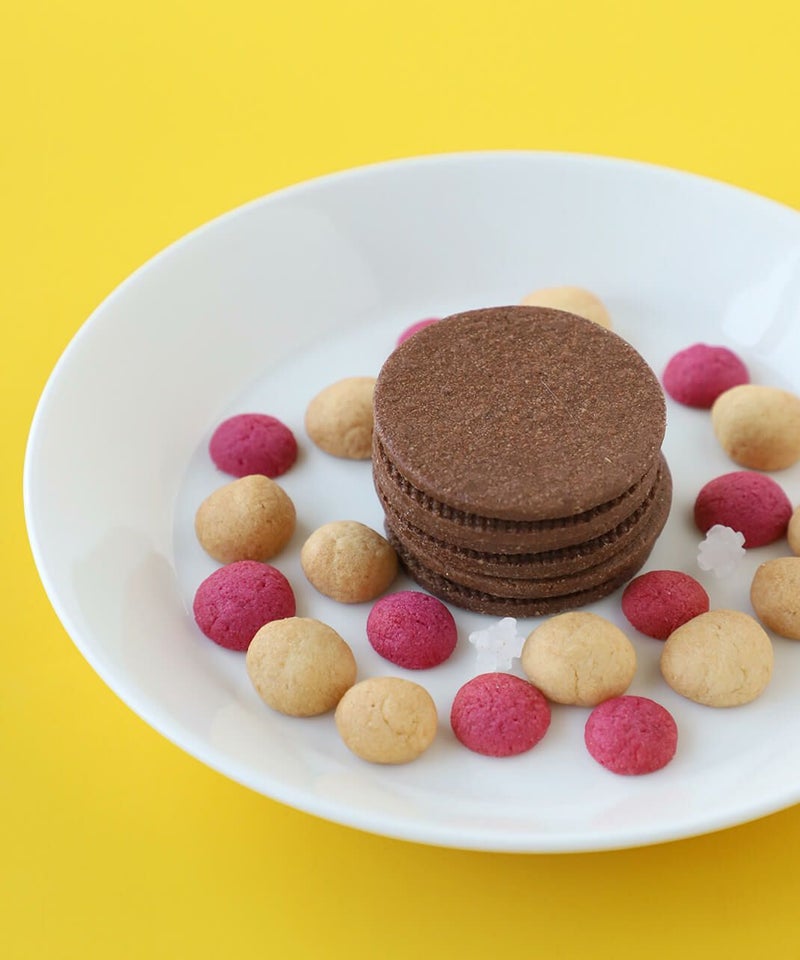 クッキーの間には、ビーツクッキーや金平糖をあしらい、見た目にも可愛らしいクッキー缶になりました。